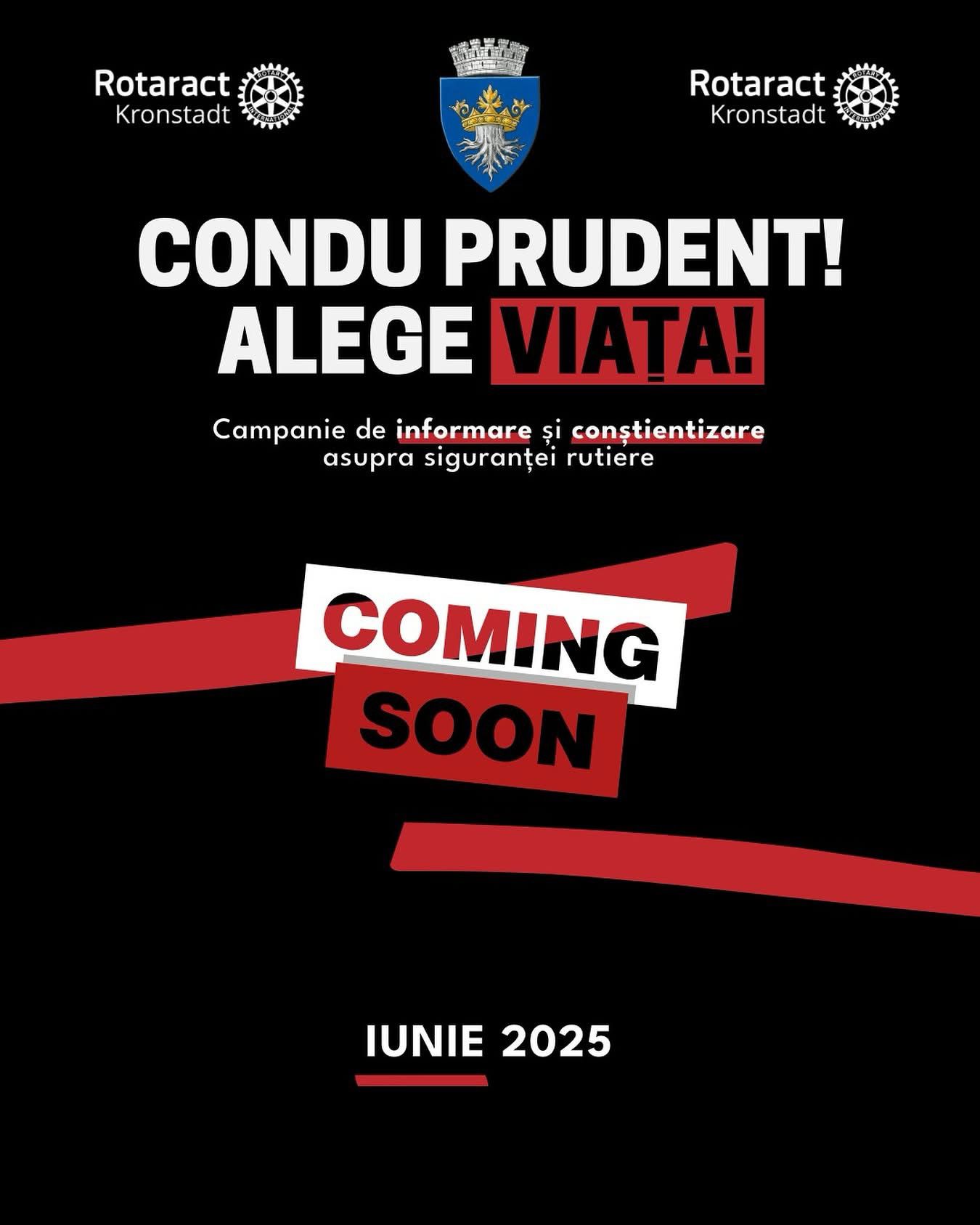 Pe 7 iunie 2025, în Piața Sfântul Ioan din Brașov, Clubul Rotaract Kronstadt alături de Primăria Municipiului Brașov organizează un nou eveniment din cadrul campaniei naționale „Condu Prudent! Alege viața!”, dedicat promovării siguranței rutiere și conduitei preventive în trafic.