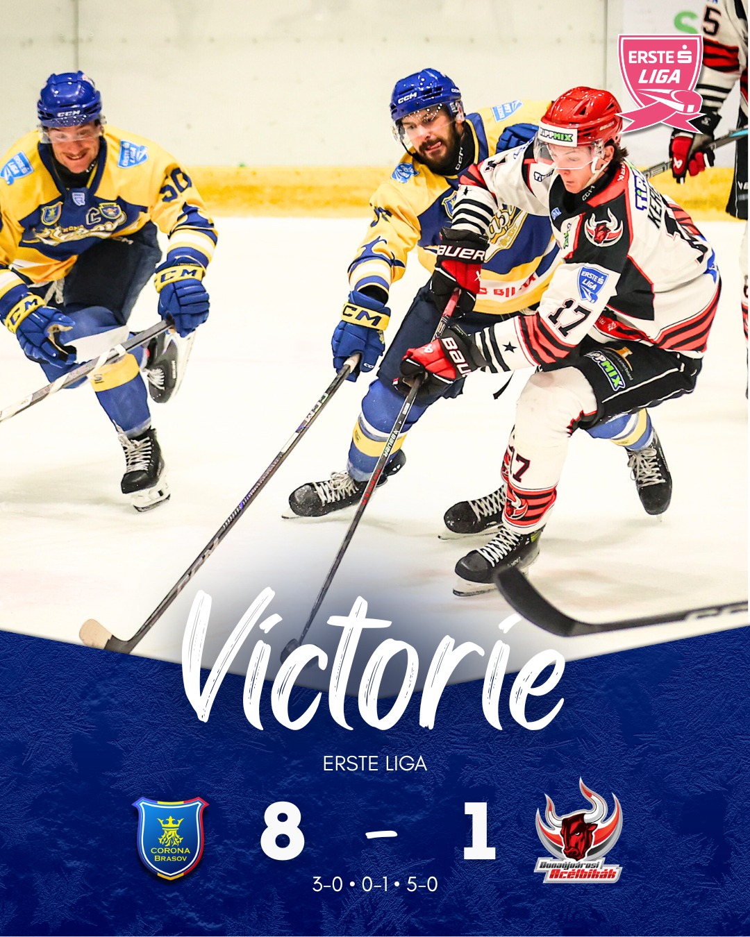 Seară perfectă pentru Brașov! Corona a obținut o victorie clară în fața celor de la DAB, impunându-se cu scorul de 8-1 pe gheața Patinoarului Olimpic din Brașov.