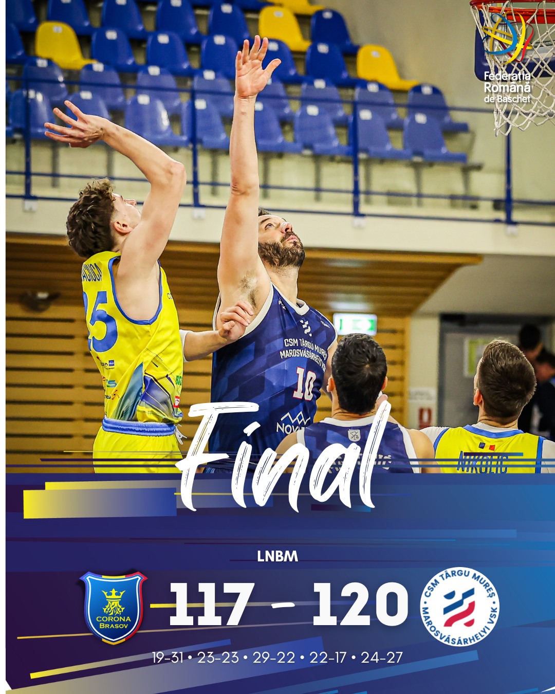 Corona Brașov a pierdut dramatic confruntarea cu CSM Tg. Mureș, scor 117–120, după două reprize de prelungiri, într-un meci extrem de solicitant, disputat în condiții speciale. Echipa brașoveană a fost afectată serios de probleme medicale, nu mai puțin de opt jucători fiind diagnosticați cu gripă, iar solicitarea de amânare a partidei nu a fost acceptată.