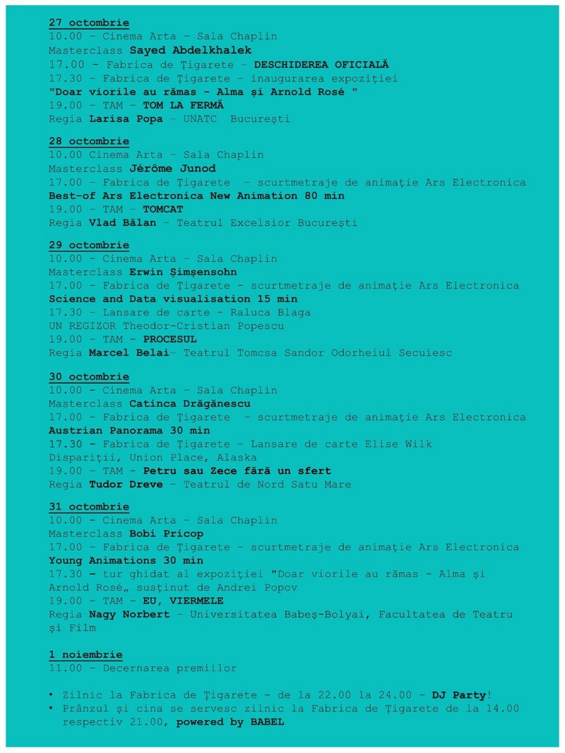 Singurul festival de teatru din România care are ca finalitate un contract de angajare sau un contract de colaborare cu o instituție teatrală profesionistă. Dedicat în fiecare an unui anumit domeniu al artelor spectacolului, Festivalul DbutanT de la Sfântu Gheorghe își consacră cea de-a 10-a ediție (27.10-01.11.2025) unei competiții de spectacole realizate de tineri regizori, însoțită de o serie de ateliere de formare. Organizat de Teatrul „Andrei Mureșanu”, evenimentul pune în dialog artiștii emergenți cu personalități românești și internaționale ale teatrului care compun juriul concursului de spectacole dar și care propun sesiuni de perfecționare. Între acești invitați de marcă se numără și regizorul helveto-austriac Jérôme Junod, care va oferi un master-class despre „Abordările politice ale creatorului de teatru” (28.10, ora 10.00, Cinema Arta, Sala Chaplin, Str. Kőrösi Csoma Sándor 10). Festivalul DbutanT este susținut de Forumul Cultural Austriac, care prezintă un program special și sprijină prezența regizorului austriac.