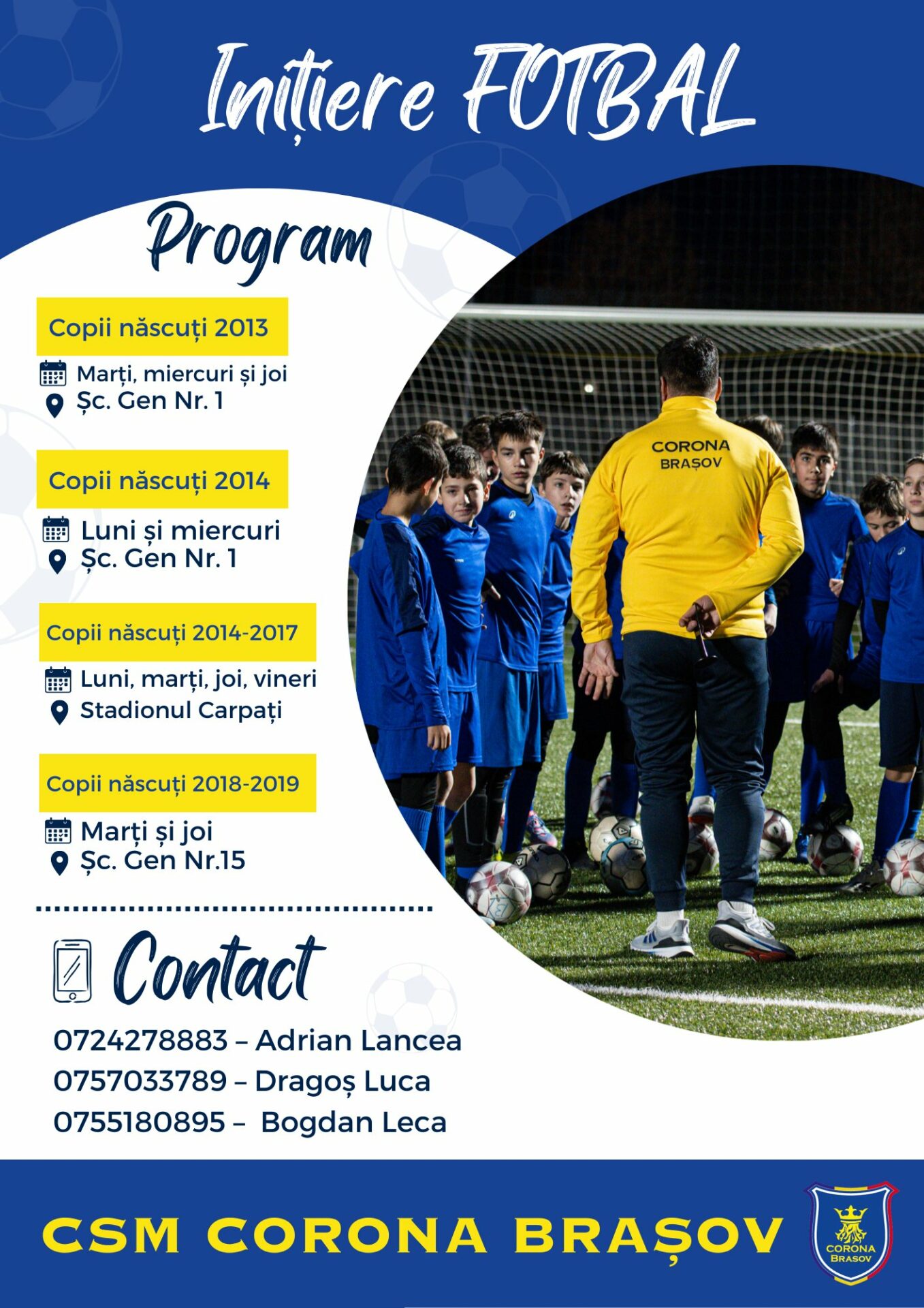 Vrei ca energia copilului tău să se transforme în performanță și în același timp să aibă parte de distracție? Acum e momentul! CSM Corona Brașov dă startul selecției la fotbal pentru băieți născuți între 2013-2019.