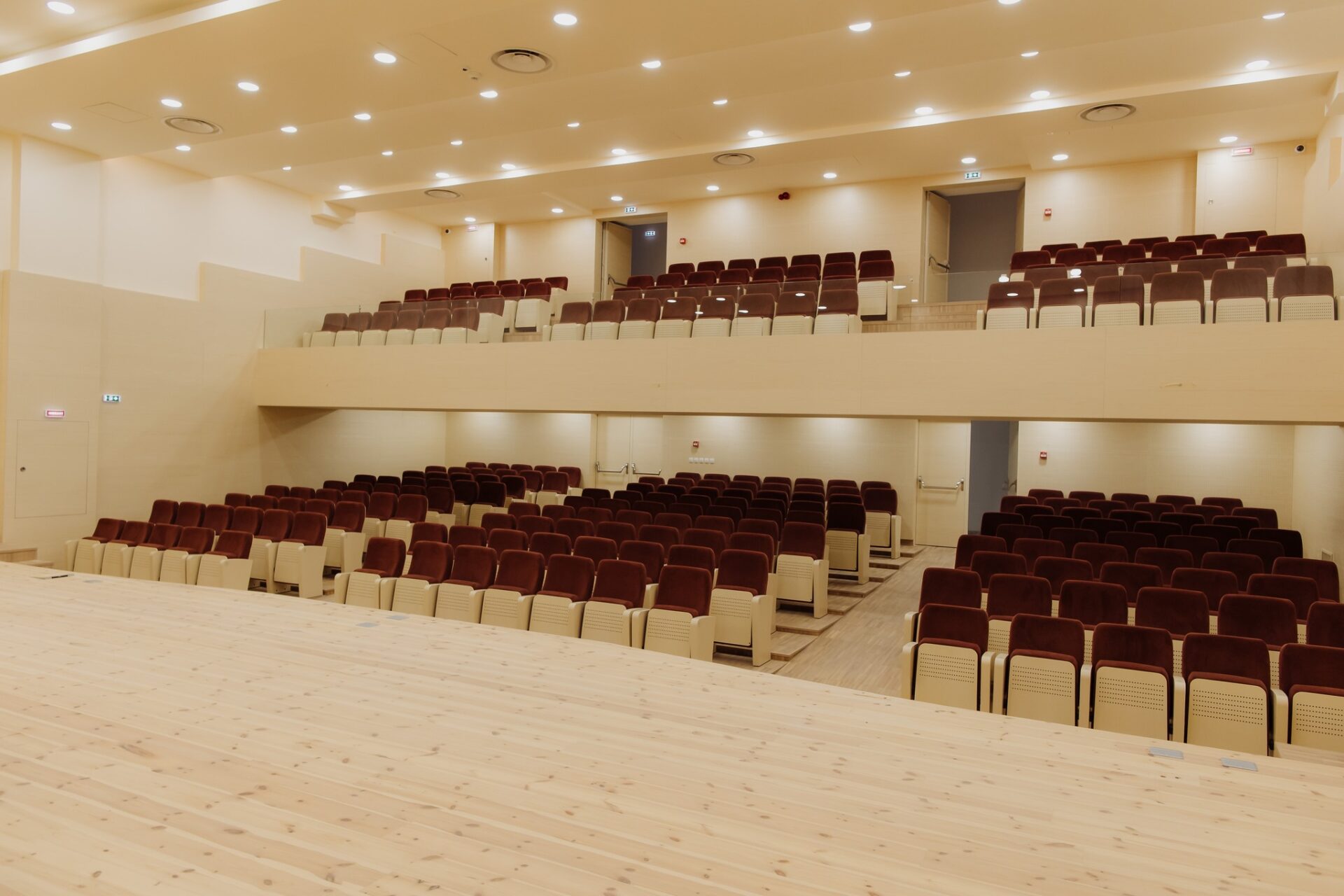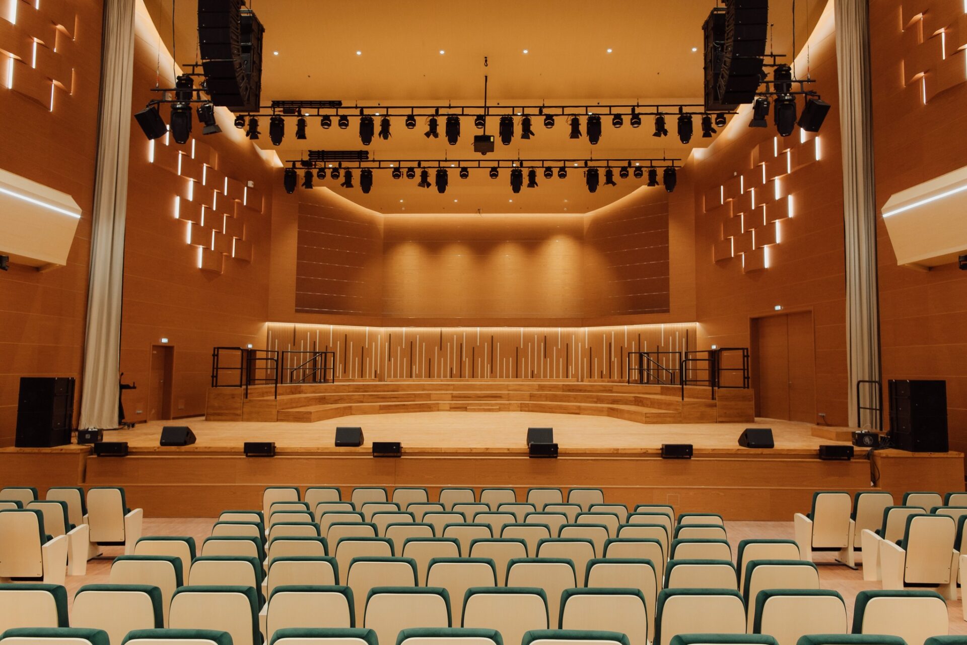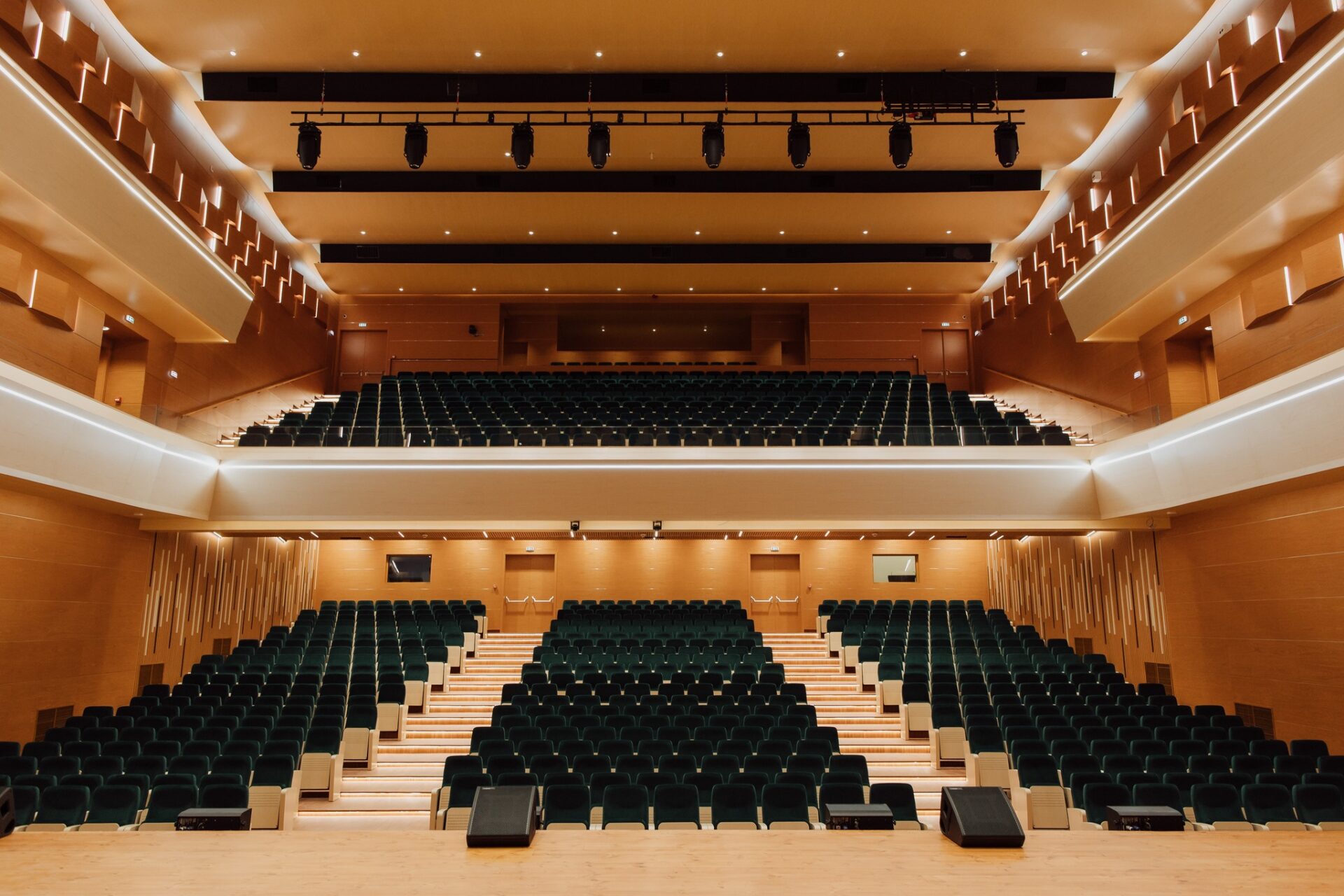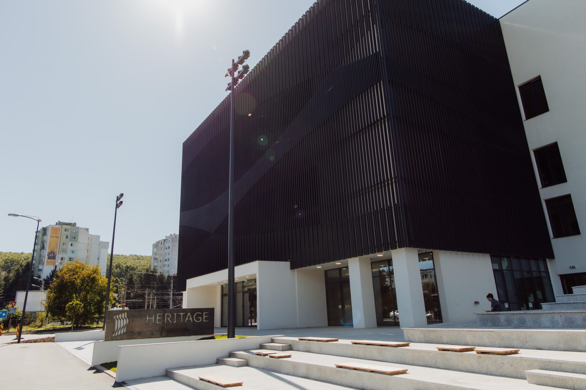 Inima campusului este sala „Heritage”, cu peste 1.000 de locuri și o acustică la standarde europene – cea mai mare sală de concerte ridicată în țară după 1989. Complexul mai include două amfiteatre de 239 de locuri, săli de repetiții și spații didactice moderne.
