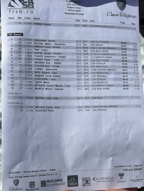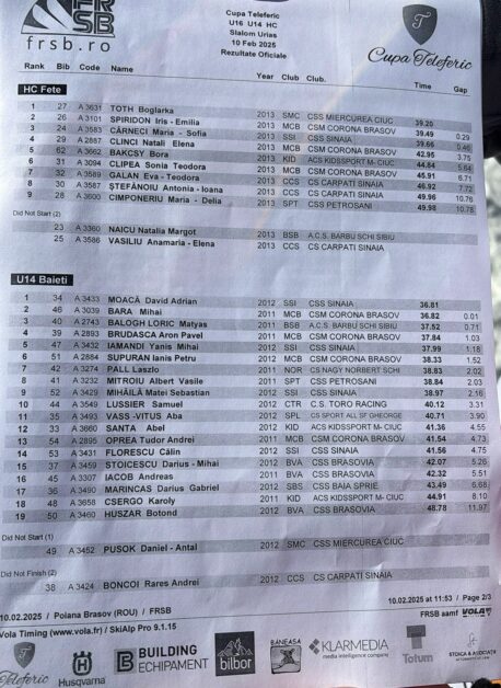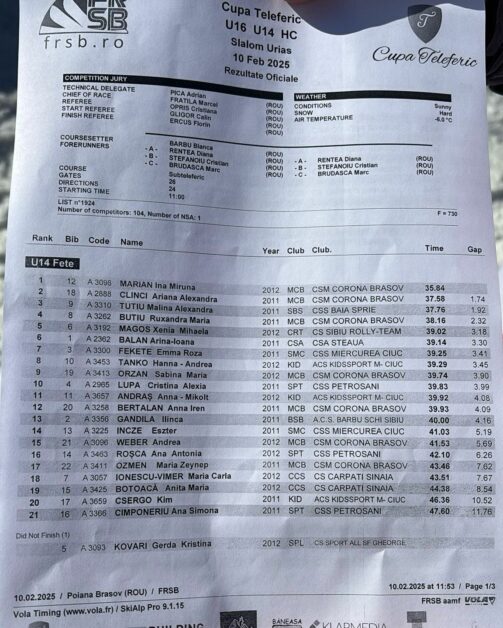 Cupa Teleferic la Schi Alpin 2025 – primele rezultate la Slalom Uriaș