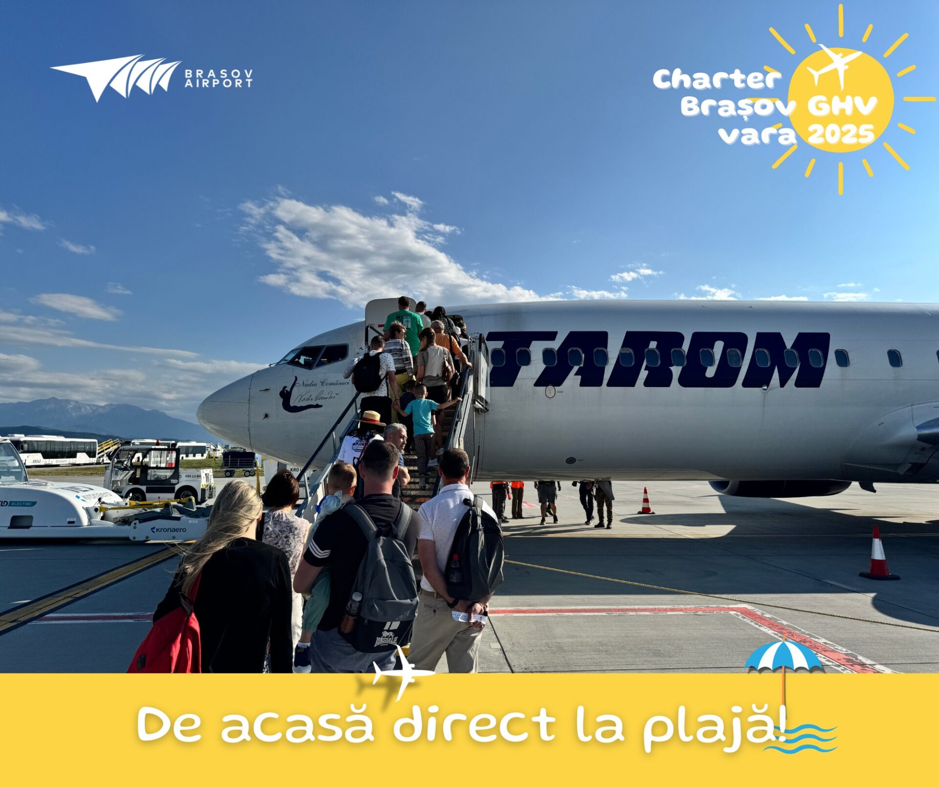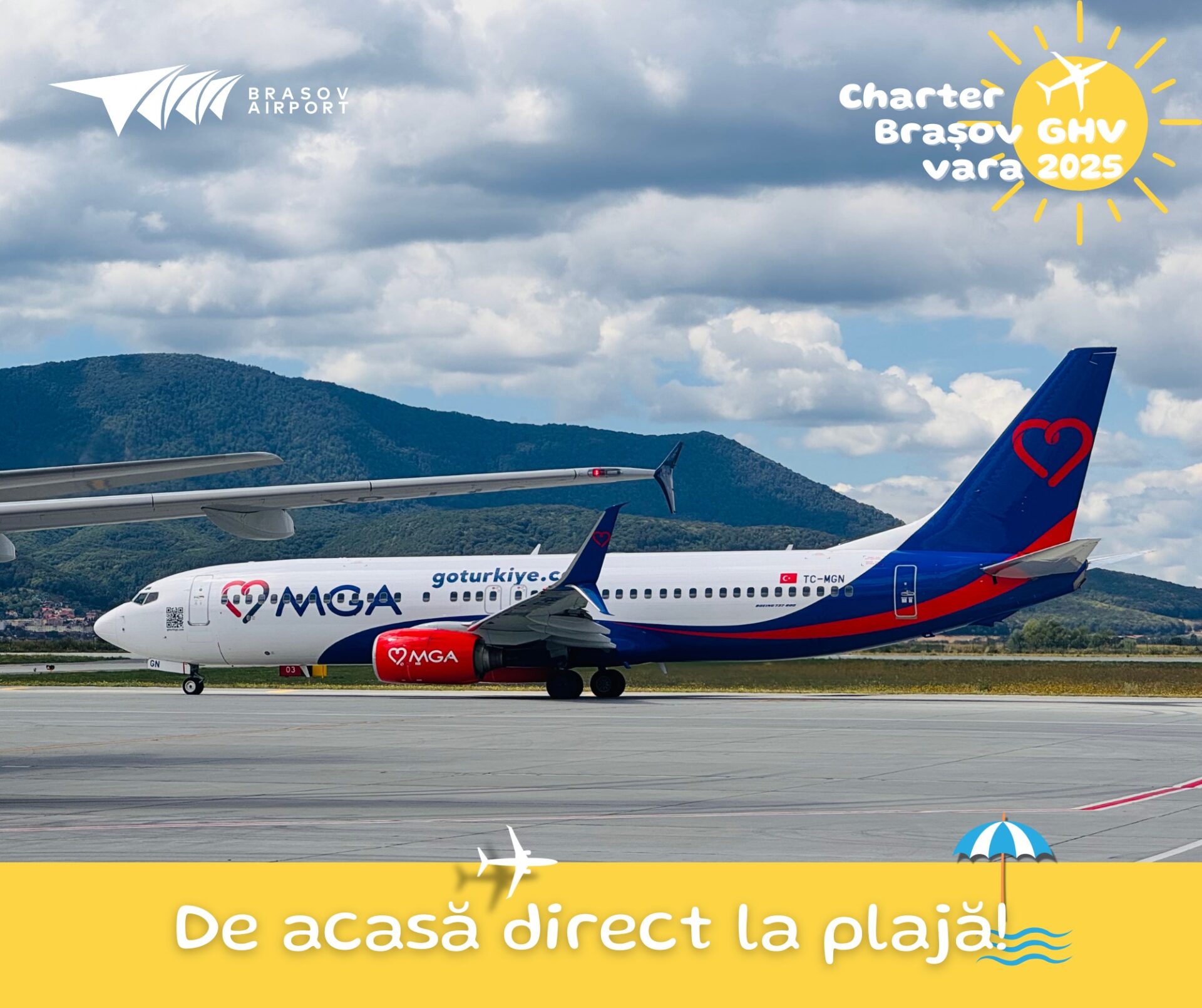 Odată cu sosirea operatorilor TAROM și MGA Airlines, lista companiilor care efectuează zboruri charter de pe Aeroportul Internațional Brașov este completă. În această vară, pasagerii pot zbura direct din Brașov către 5 destinații de vacanță: Antalya (Turcia), Heraklion și Chania (Grecia), Monastir (Tunisia) și Hurghada (Egipt).