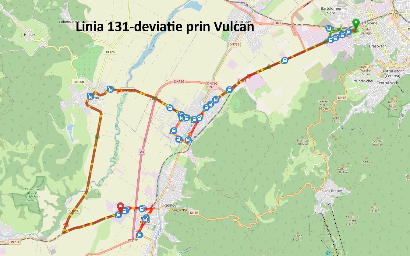 Sâmbătă, 22 noiembrie 2025 și duminică, 23 noiembrie 2025, autobuzele RATBV de pe liniile metropolitane 130 (Brașov – Râșnov), 131 (Brașov – Romacril Râșnov) și 140 (Brașov – Zărnești) vor circula pe trasee deviate, schimbările fiind determinate de efectuarea unor lucrări de infrastructură la trecerea peste calea ferată de pe DN 73, între localitățile Cristian și Râșnov.