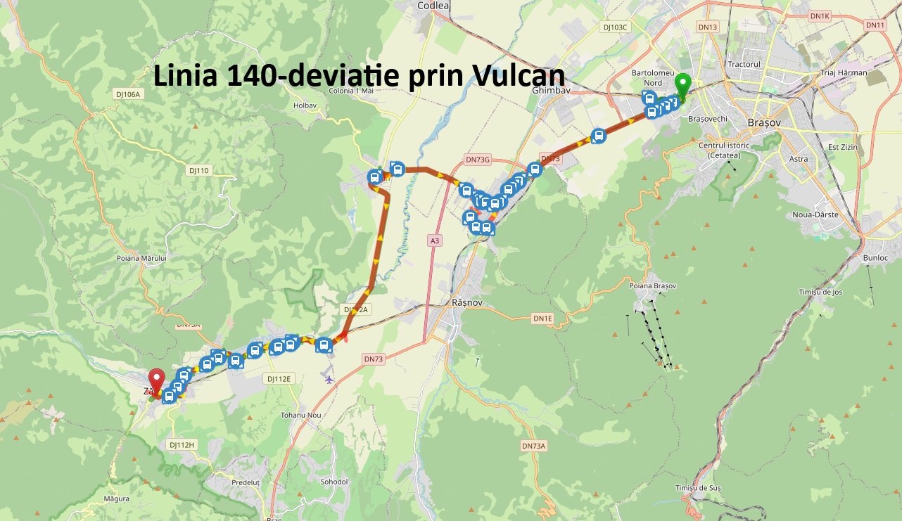 Cele trei linii de transport public vor fi deviate sâmbătă și duminică din centrul comunei Cristian spre comuna Vulcan, însă, ținând cont de infrastructura stradală existentă în cele două localități, pe respectivele trasee vor circula exclusiv autobuze de 12 metri. Vă prezentăm mai jos traseele temporare ale celor trei linii: