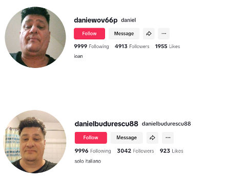 De exemplu, contul de TikTok “danielbudurescu88” este aproape identic cu utilizatorul “daniewov66p”: