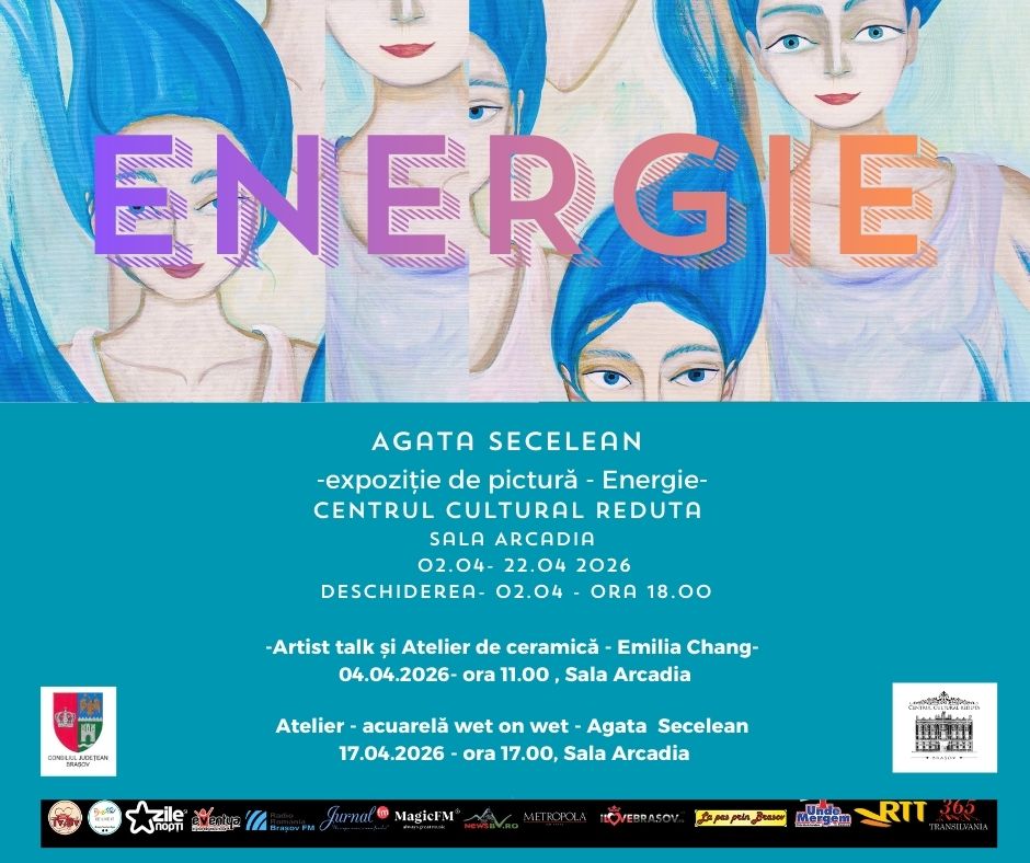 Centrul Cultural Reduta din Brașov găzduiește în perioada 2–22 aprilie, în Sala Arcadia, expoziția de pictură „Energie”, semnată de artistul vizual brașovean Agata Secelean. Deschiderea expoziției va avea loc în data de 2 aprilie 2026, ora 18:00, oferind publicului ocazia de a intra într-un dialog direct cu universul artistic al autoarei.