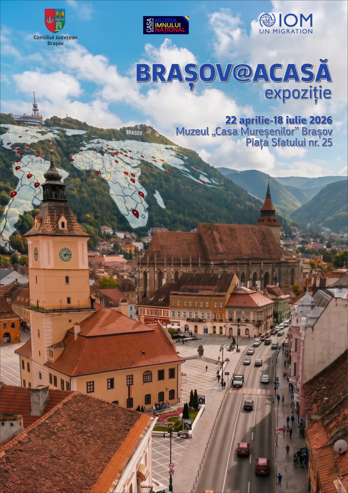 Consiliul Județean Brașov și Muzeul „Casa Mureșenilor” Brașov, în parteneriat cu Organizația Internațională pentru Migrație (IOM România), vă invită miercuri, 22 aprilie 2026, ora 17:00, la sediul din Piața Sfatului nr. 25, la vernisajul expoziției Brașov@Acasă.