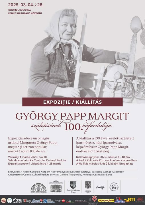 În perioada 4-28 martie 2025, în foaierul de la Centrul Cultural Reduta va avea loc expozitia „Gyorgy Papp Margit – 100 de ani”, un omagiu adus artistei populare și artizanei care a cules și a păstrat obiceiurile și tradițiile ceangăilor din cele Șapte Sate așezate în Țara Bârsei. Vernisajul expoziției va avea loc în Sala de Consiliu a Centrul Cultural Reduta, marţi, 4 martie, ora 18:00.