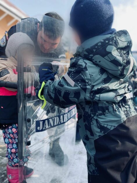 Abordând o tematică diversă, în funcție de particularitățile vârstei, colegii noștri le-au prezentat celor mici atât profesia de jandarm, echipamentul și tehnica specifică, cât și teme din sfera prevenirii infracțiunilor comise cu violență.