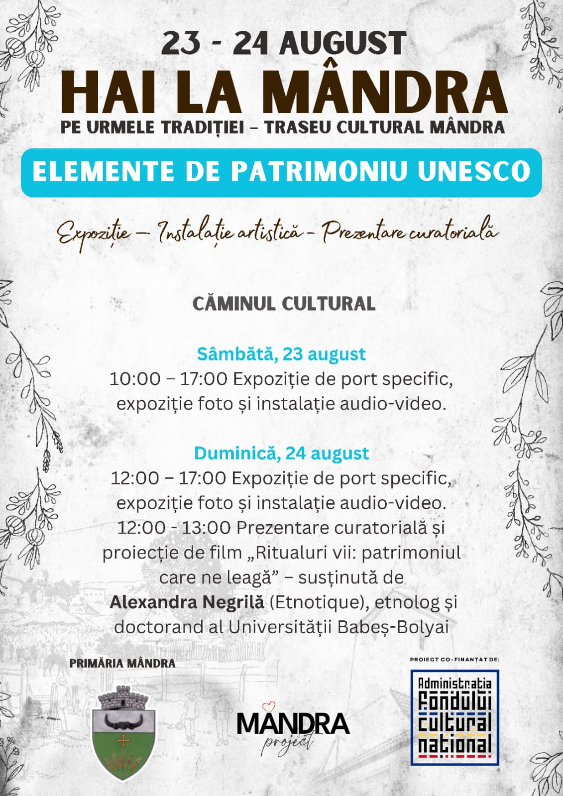 Brașovenii și turiștii sunt așteptați în acest weekend la Mândra, unde întregul sat se transformă într-un traseu cultural viu, ce îmbină trecutul cu prezentul, tradiția cu tehnologia și meșteșugul cu creativitatea contemporană. Organizatorii anunță un festival „altfel”: fără mici și tarabe comerciale, dar cu porții generoase de cultură, natură, memorie și spiritualitate locală.