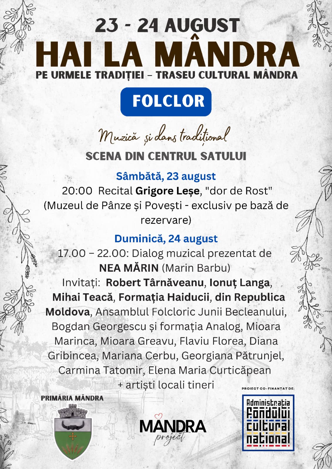 Festivalul de la Mândra promite o experiență culturală completă, în care arta, tradiția și gastronomia locală se întâlnesc într-un cadru natural spectaculos.
