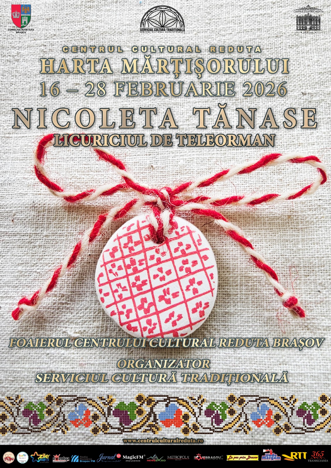 Pentru promovarea și valorificarea meșteșugurilor tradiționale, Centrul Cultural Reduta prin Serviciul Cultură Tradițională organizează în perioada 16 – 28 februarie 2026 Expoziția „Harta Mărțișorului”, găzduită în foaierul instituției.