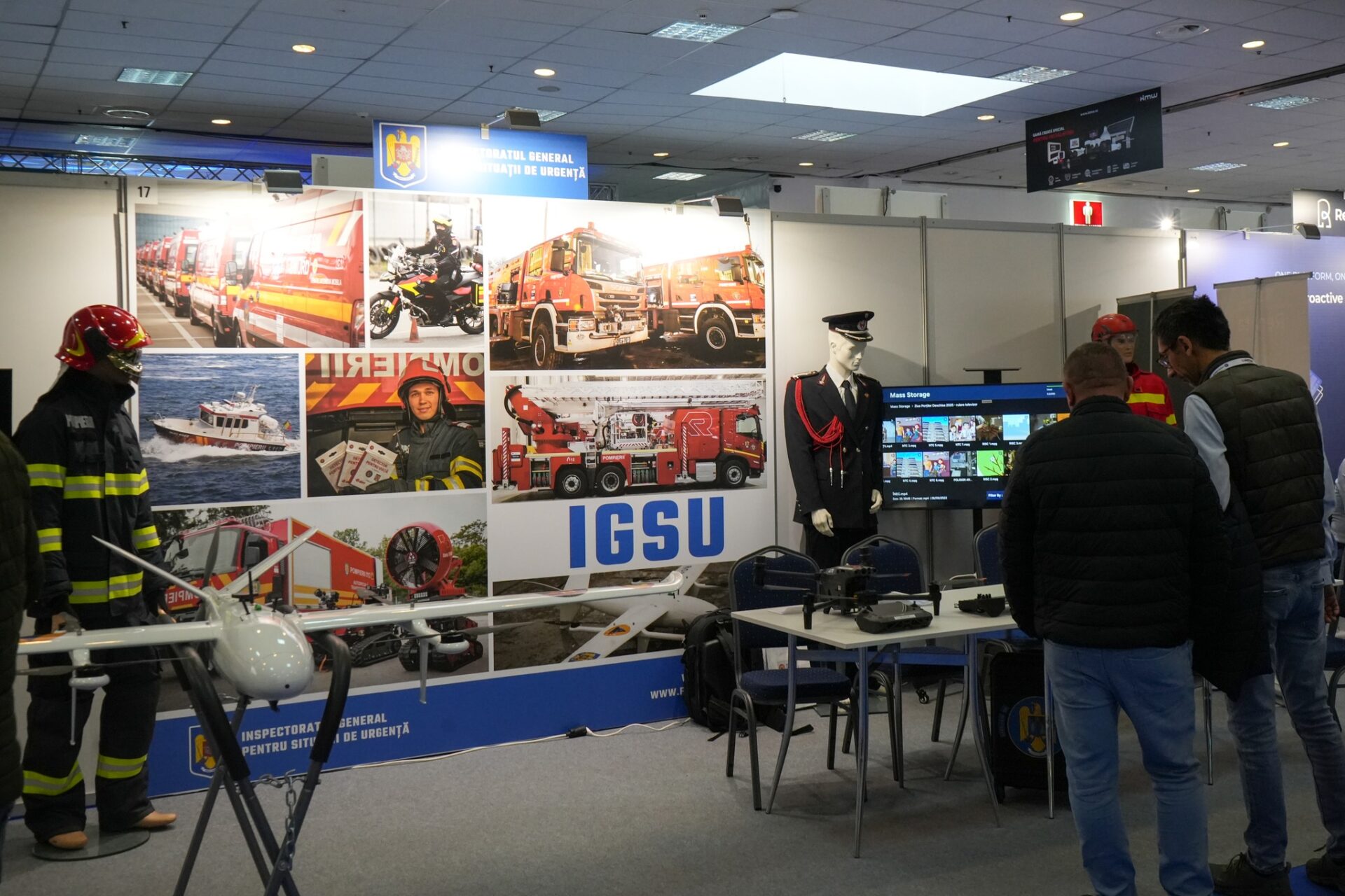 În cadrul standului IGSU au fost prezentate două sisteme aeriane fără pilot (Unmanned Aerial System – UAS), echipamente și tehnici de prim ajutor, campaniile naționale de informare și conștientizare, precum și activitățile instituției în domeniul cercetării, formării, certificării și atestării în sfera apărării împotriva incendiilor și protecției civile. Totodată, au fost prezentate tehnica, echipamentele și activitățile specifice echipei de căutare-salvare RO-USAR.
