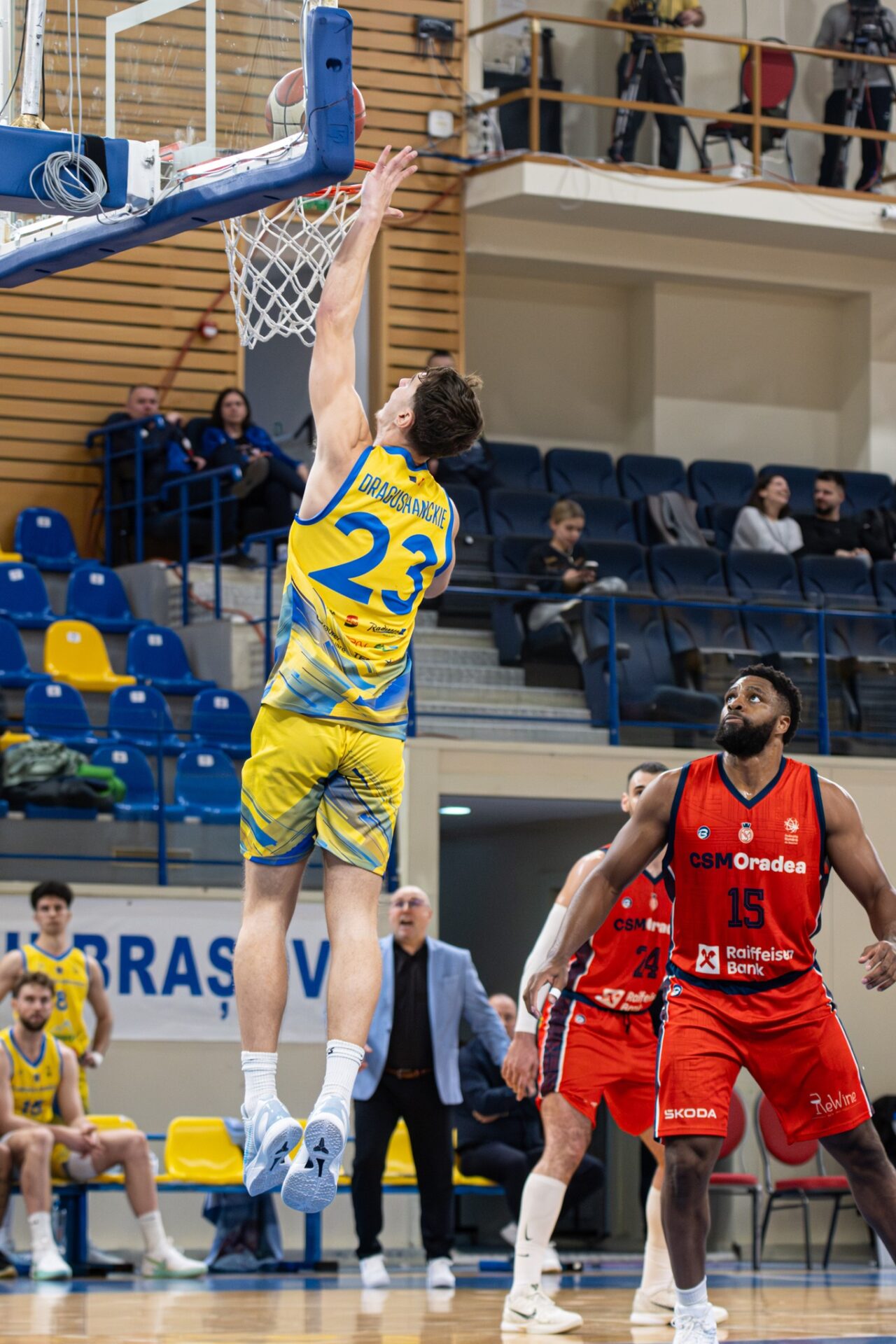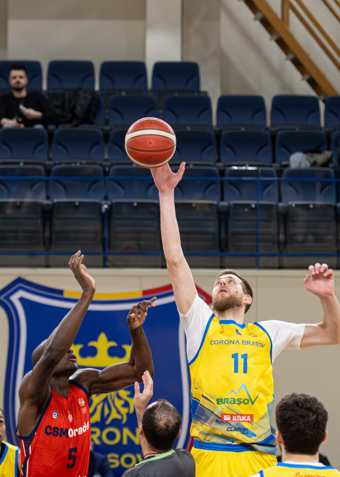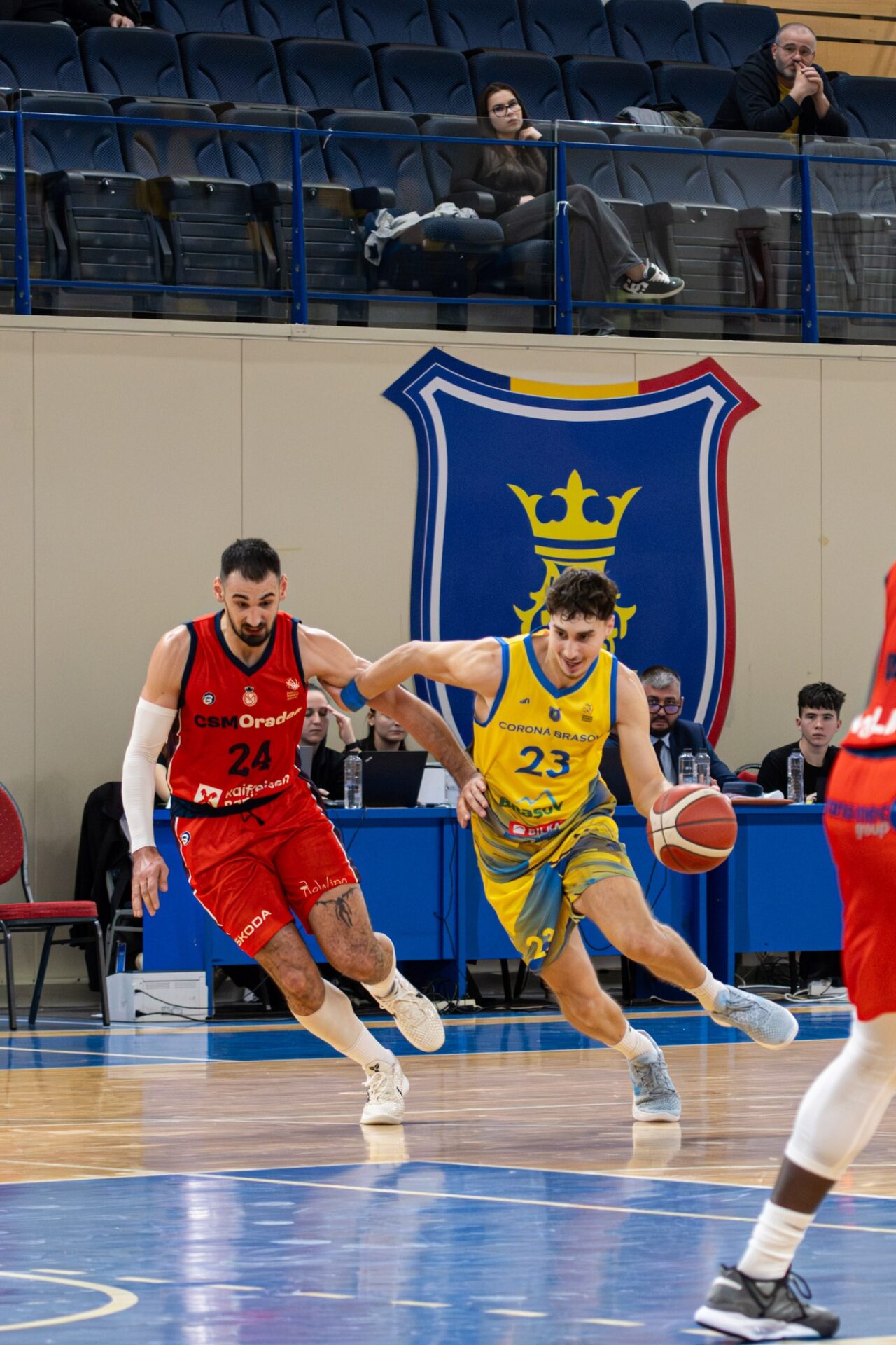CSM Oradea a învins-o greu pe CSM Corona Braşov, cu scorul de 99-96 (25-31, 22-24, 23-24, 29-17), marţi seara, în Sala „Dumitru Popescu-Colibaşi”, într-un meci din etapa a 21-a a Ligii Naţionale de baschet masculin.