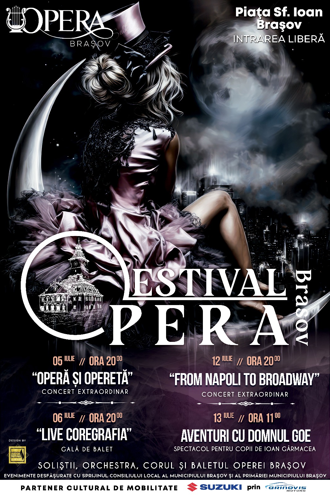 Sâmbătă, 5 iulie 2025, de la ora 20.00, în Piața Sf. Ioan, brașovenii și turiștii sunt invitați la un concert extraordinar dedicat muzicii de operă și operetă. Îi veți urmări pe soliștii: Mădălina Bourceanu, Maria Catrina, Aurelia Florian, Corina Klein, Lăcrămioara Schuller, Sonia Hazarian, Carmen Topciu, Adrian Dumitru, Alexandru Aghenie, Valentin Marele și Dan Popescu. Alături de ei, participă Orchestra și Corul Operei Brașov. La pupitrul dirijoral se va afla maestrul Traian Ichim. Prezintă: Simona Manole.