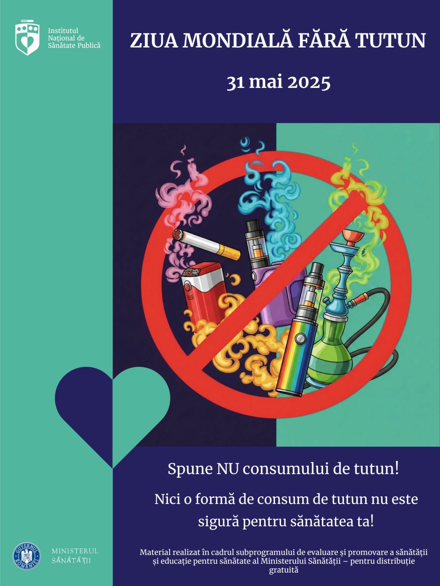 În contextul Zilei Mondiale Fără Fumat, 31 mai 2025, Institutul Național de Sănătate Publică reiterează că este nevoie de efortul comun al guvernelor, organismelor de reglementare și organizațiilor de sănătate publică în direcția intensificării eforturilor pentru interzicerea aromelor în toate produsele din tutun și pentru reglementarea strictă a aditivilor utilizați.