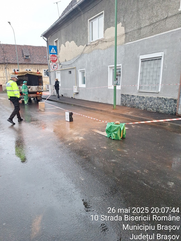 Intervenție rapidă a Poliției Locale Brașov după prăbușirea unor elemente de fațadă pe strada Bisericii Române
