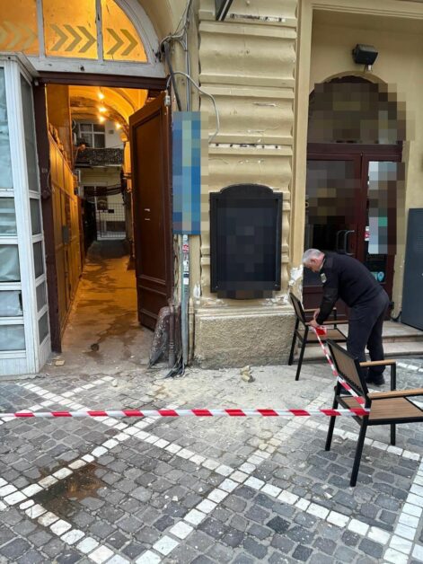 În dimineața zilei de marți, 20 mai, o altă intervenție a avut loc pe strada Republicii, unde au căzut bucăți din fațada unei clădiri. Polițiștii de la Serviciul Ordine și Liniște Publică au izolat perimetrul pentru a preveni accidentele, iar Serviciul Disciplina în Construcții urmează să someze proprietarii clădirii pentru remedierea situației.