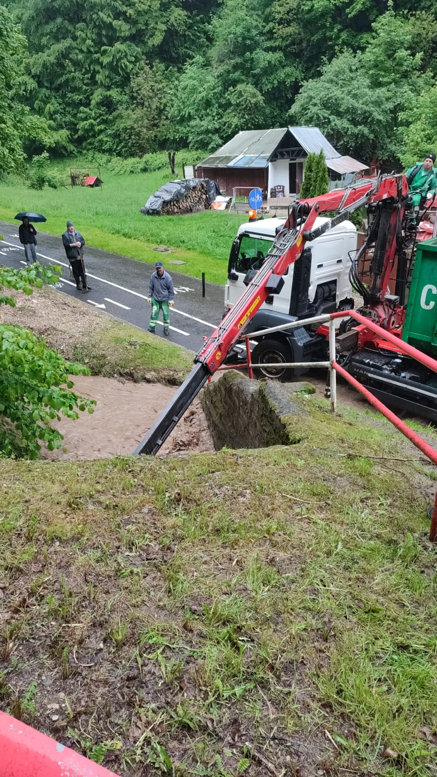 În cartierul Șchei, pe strada Podul Crețului, un excavator și un greifer eliberează de aluviuni și bolovani zona în care pârăul Graft intră în subteran. Pentru următoarele ore, autobuzele liniei 50 vor circula doar până la capătul de linie Pe Tocile, fără a mai deservi restul traseului până la Pietrele lui Solomon.