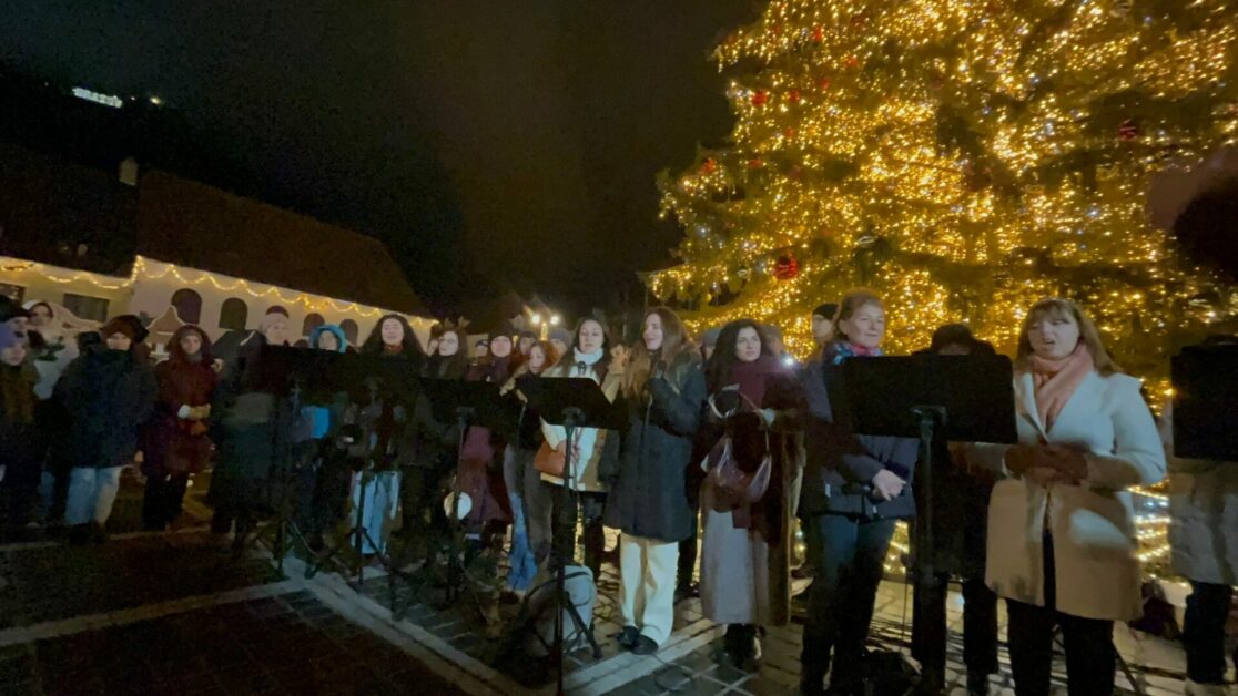 Duminică, 14 decembrie 2025, Grupul Cantus Anima, coordonat de Robert Bede, a susținut un concert de colinde chiar lângă bradul frumos împodobit din Piața Sfatului.