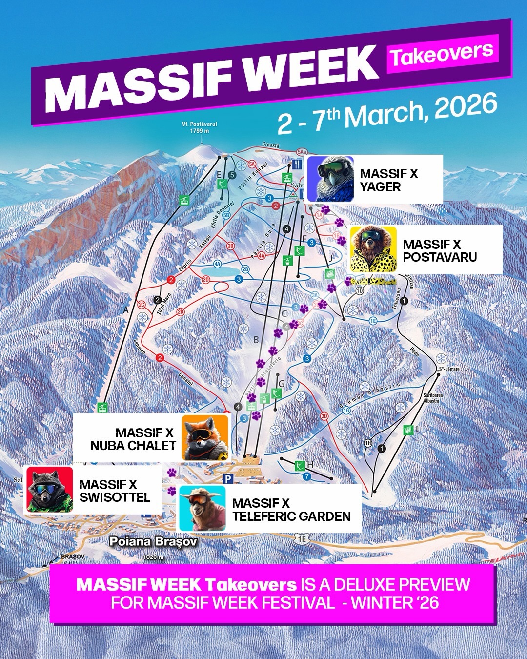 Între 2 și 7 martie, Poiana Brașov devine gazda MASSIF WEEK TAKEOVERS, evenimentul care aduce muzică, vibe de munte și experiențe unice pentru toți iubitorii de snow & fun.