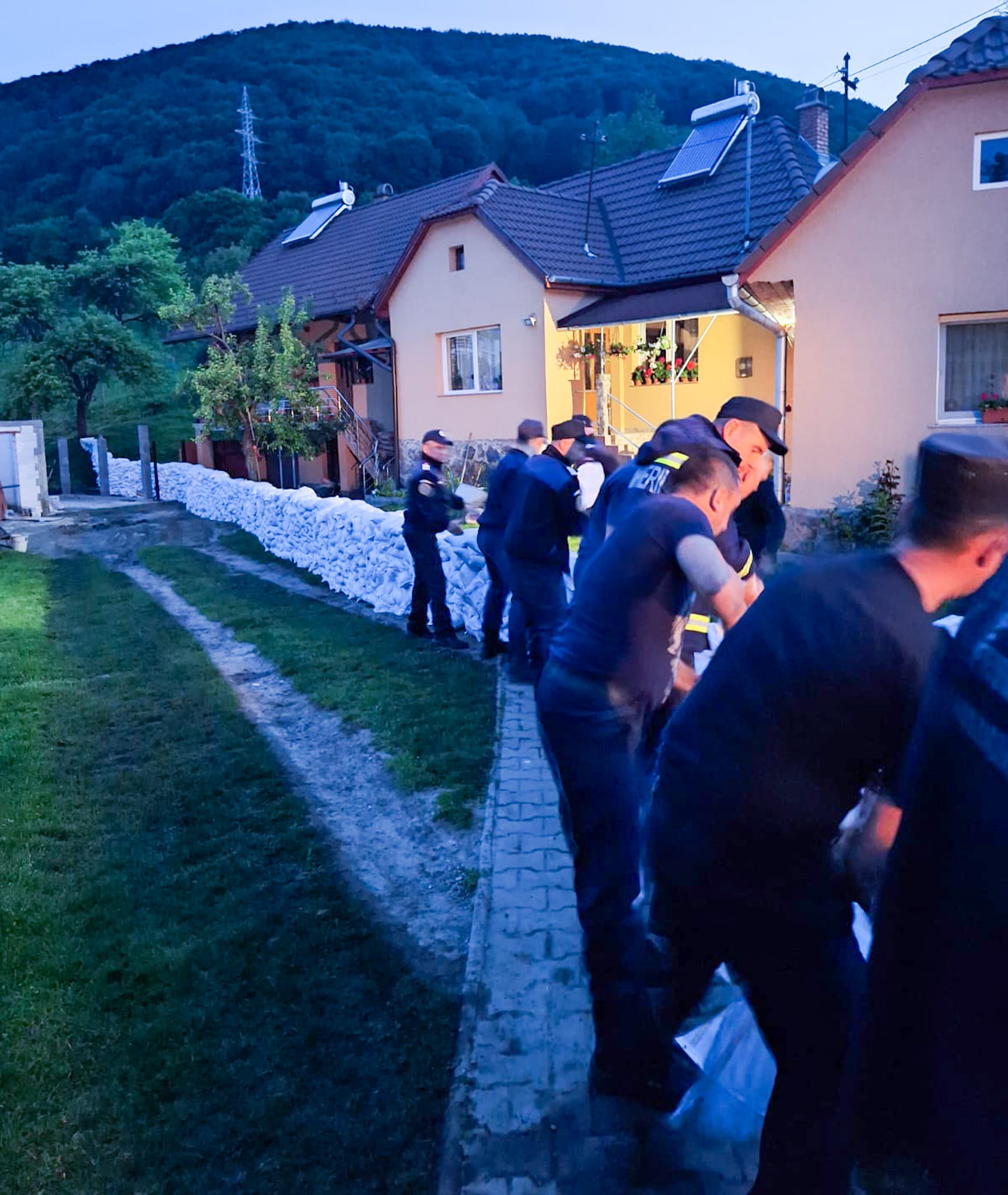 Măsurile de apărare hotărâte în data de 01.06.2025 au fost realizate în mod corespunzător. Sistemul de apărare constă din 500 de metri liniari de panouri și aproximativ 14.000 de saci cu nisip. Populația din zona de risc potențial a fost evacuată. Menționăm că se va face o scanare cu aparatură performantă în următoarele ore, iar salvatorii minieri ai Salinei Praid sunt la fața locului. Realizarea măsurilor dispuse prin Hotărârea Nr. 5 a Comitetului Județean pentru Situații de Urgență este în grafic. Este în curs realizarea și interpretarea măsurătorilor de către ANCPI.
