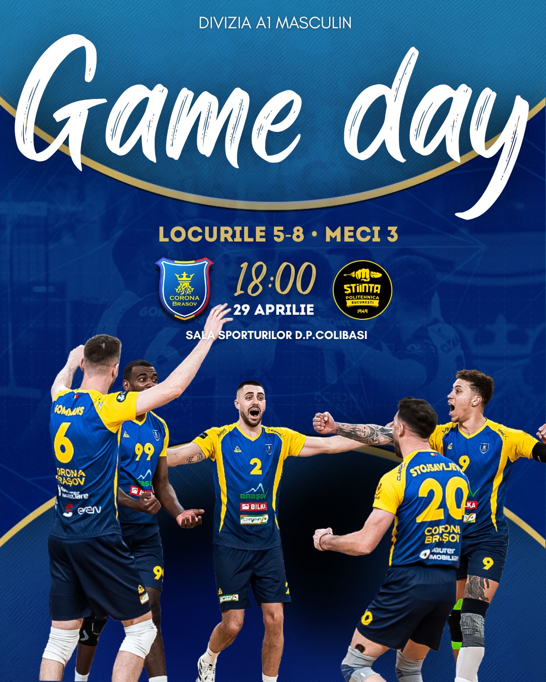 Voleibaliștii de la CSM Corona Brașov dispută astăzi, de la ora 18:00, un meci decisiv pentru calificarea în faza următoare, în compania formației CS Știința București.