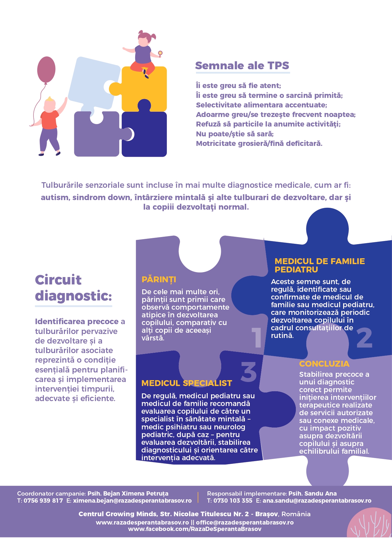 Prin această colaborare vor fi organizate campanii de informare, activități de sprijin pentru medicii de familie în identificarea timpurie a semnelor de risc, precum și schimburi de expertiză între specialiștii din domeniul medical și cel psihosocial, contribuind la depistarea precoce a tulburărilor din spectrul autist și la orientarea rapidă a familiilor către servicii specializate.