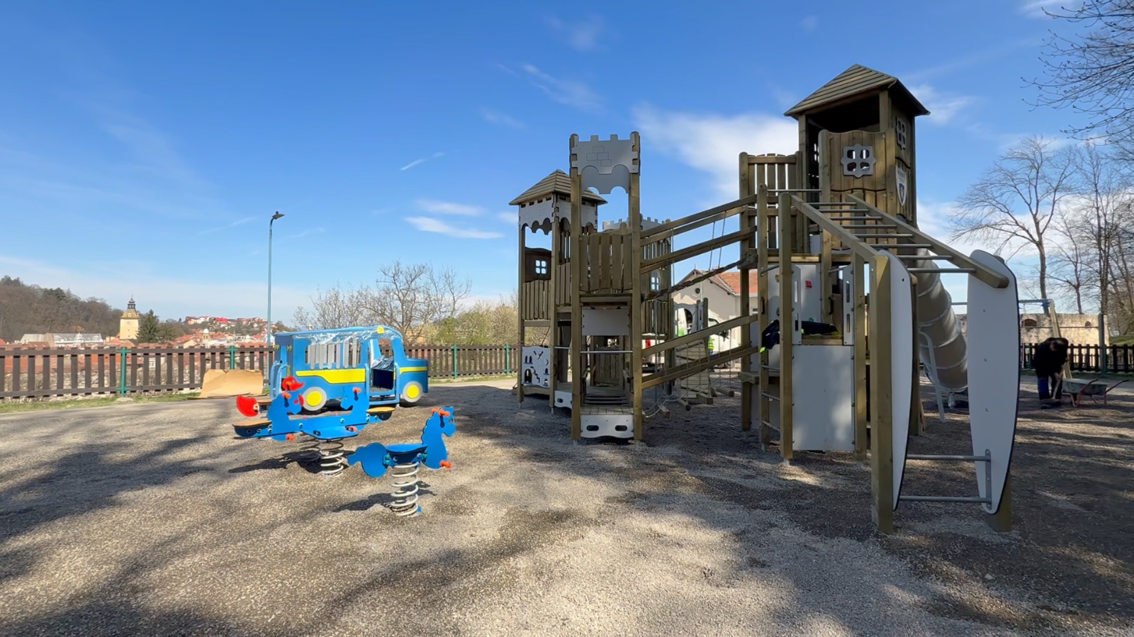 Primarul George Scripcaru a prezentat noul loc de joacă de Sub Tâmpa, care are un castel de lemn de mari dimensiuni, elemente pe arc, leagăne, dar și un model tip mașină. Urmează lucrările de amenajare a opt noi locuri de joacă, modernizarea a altor două, la care se adaugă completarea cu elemente la celelalte spații de joacă.