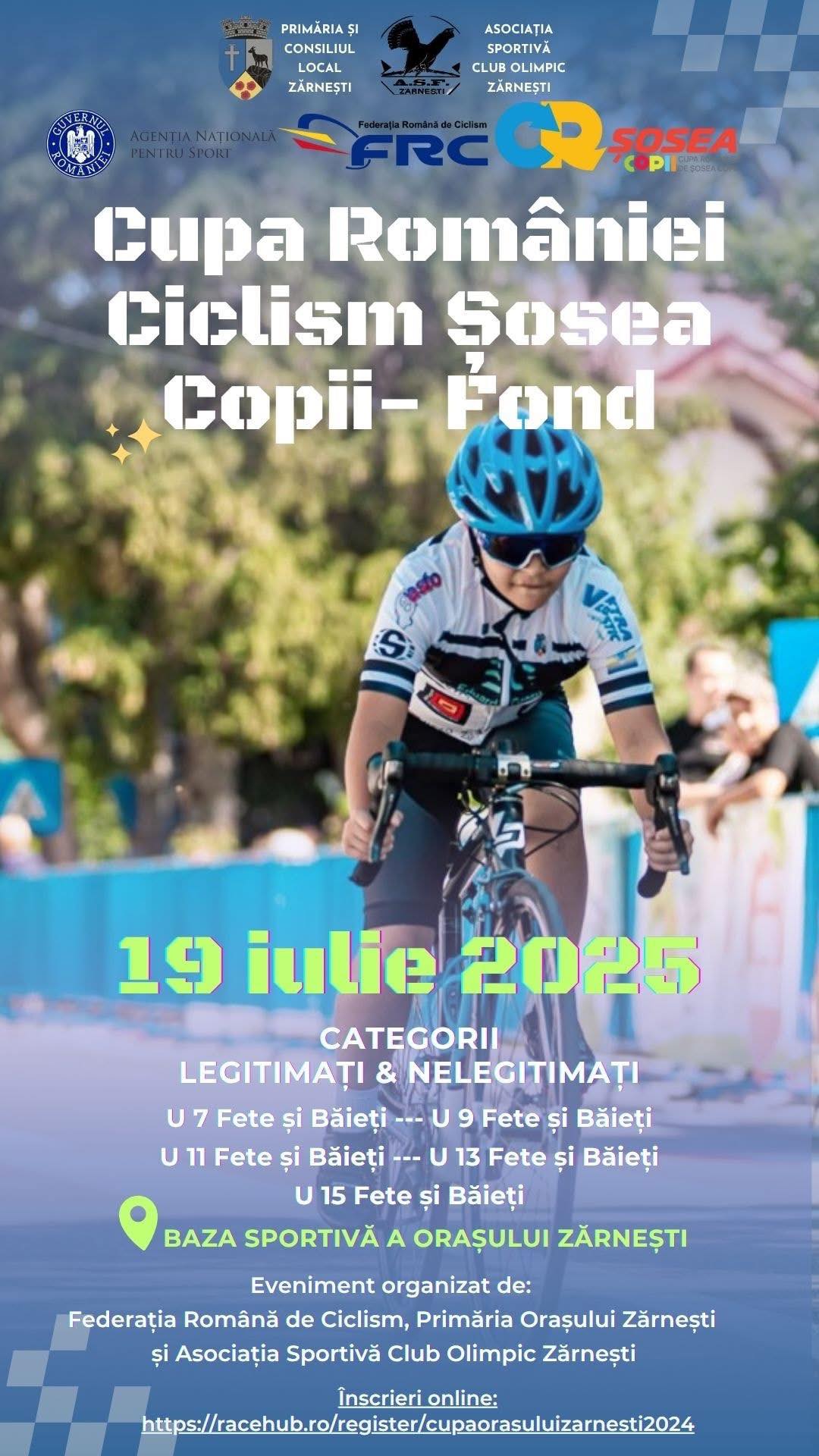 Astăzi, 19 iulie, orașul Zărnești va găzdui una dintre cele mai așteptate competiții dedicate micilor cicliști: Cupa României la Ciclism Șosea – Copii (Fond).