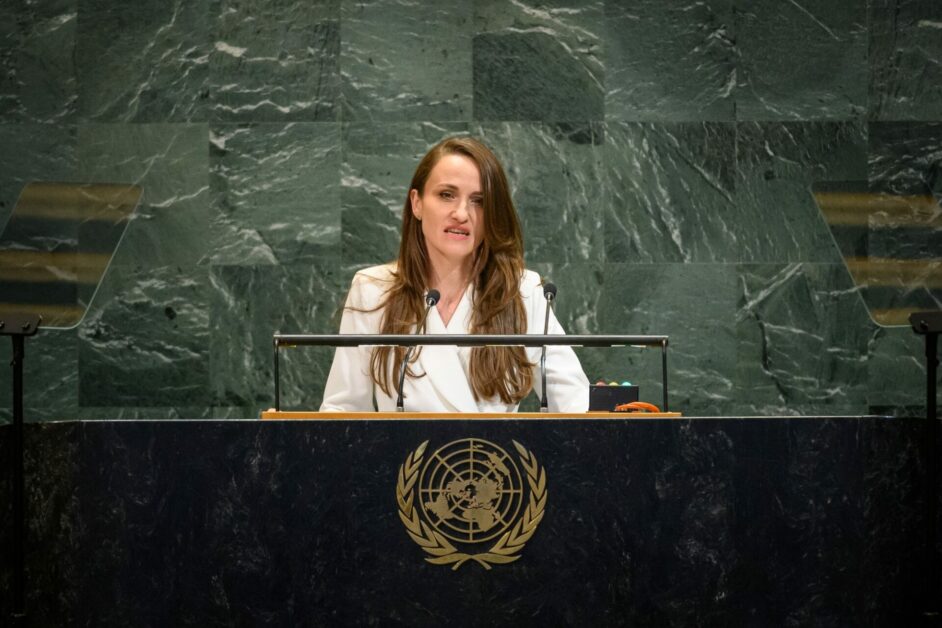 Ministrul afacerilor externe Oana Țoiu a susținut intervenția națională în plenul Adunării Generale a ONU sâmbătă, 27 septembrie 2025, în cadrul săptămânii de nivel înalt a celei de-a 80-a sesiuni a Adunării Generale a ONU.
