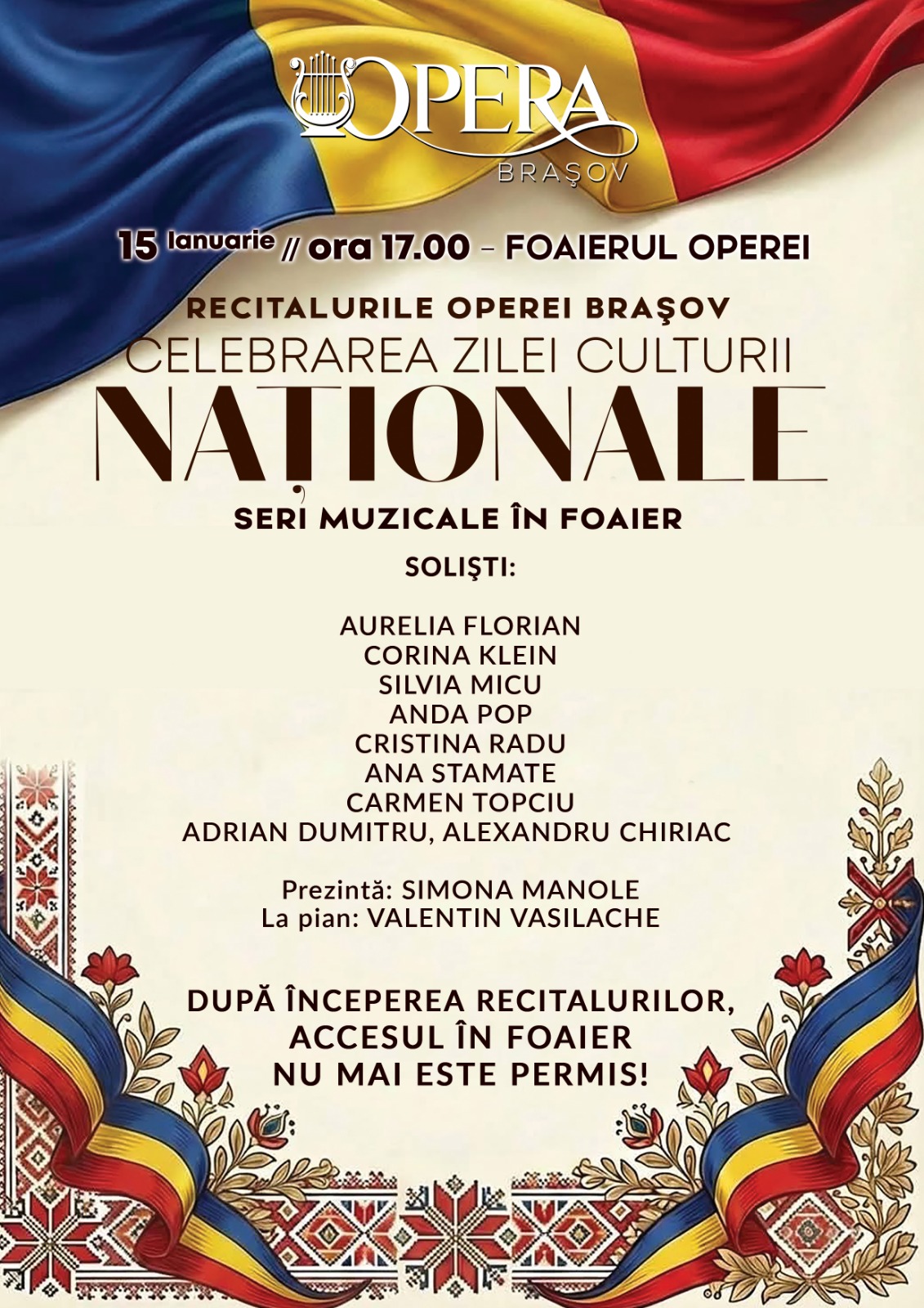 Joi, 15 ianuarie 2026, de la ora 17.00, în Foaierul Operei, publicul meloman este invitat la un nou concept artistic inițiat de Opera Brașov: „Recitalurile Operei Brașov – Seri muzicale în foaier”!