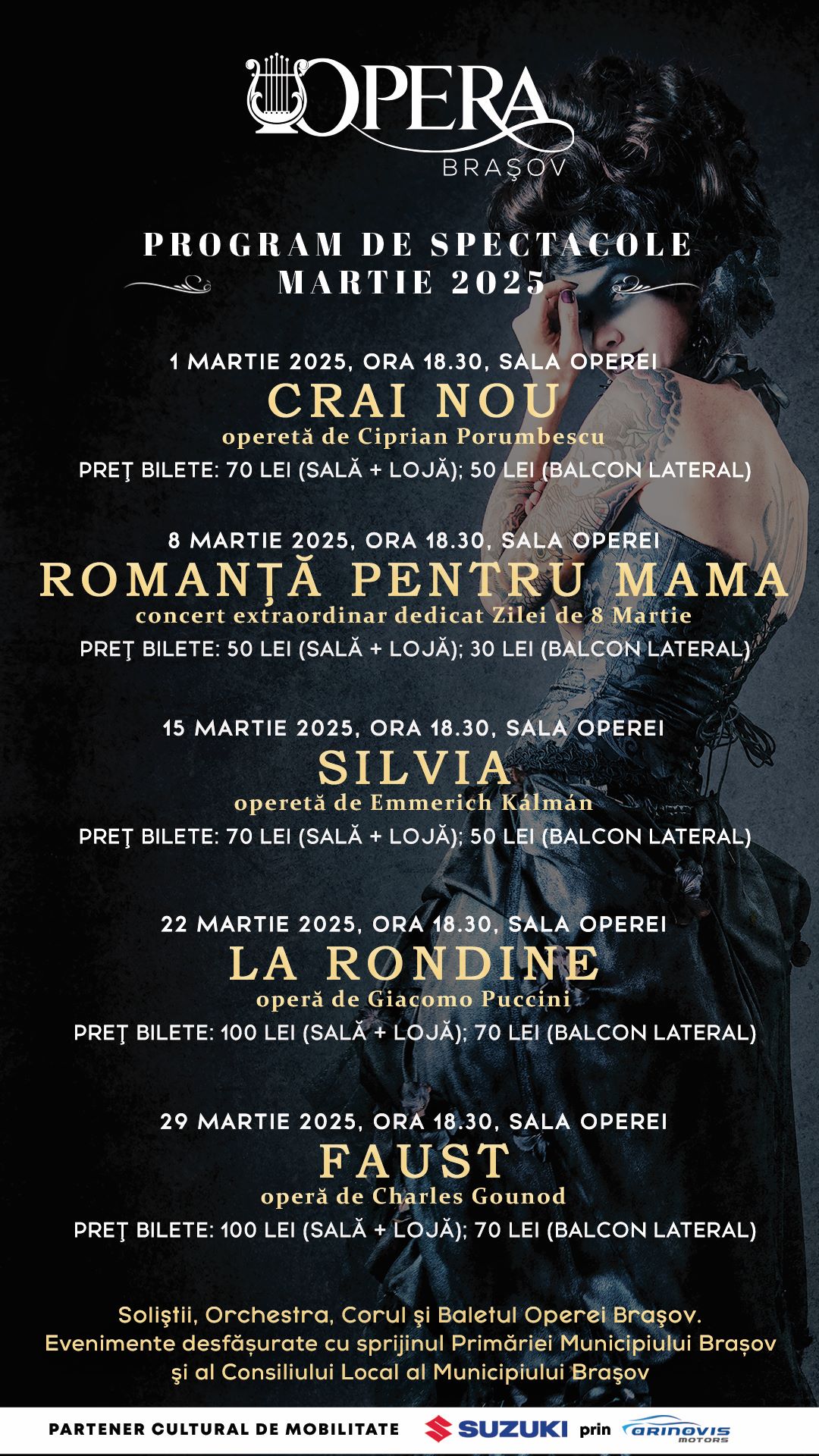 Opera Brașov. PROGRAM spectacole – MARTIE 2025