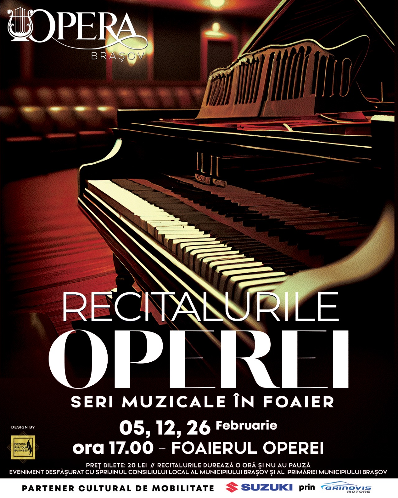 Joi, 5 februarie 2026, de la ora 17:00, Foaierul Operei Brașov va răsuna de acorduri franceze, în cadrul Recitalurilor Operei – Seri muzicale în foaier. Publicul va avea ocazia să asculte un program dedicat muzicii franceze, interpretat de soliștii: Corina Klein și Anda Pop – soprană, Sonia Hazarian, Florentina Soare și Carmen Topciu – mezzosoprană, Adrian Dumitru – tenor, Alexandru Chiriac – bariton și Dan Popescu – bas. La pian îi va acompania Simona Patriche, iar prezentarea recitalului va fi asigurată de Simona Manole.