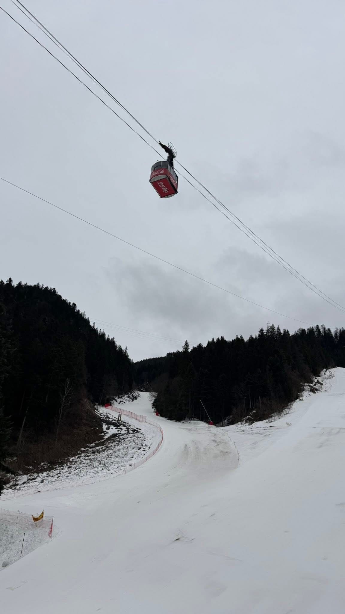 La baza pârtiei, termometrele indică +6°C, în timp ce sus, în Masivul Postăvaru, temperatura coboară până la 0°C. Deși vremea amintește mai degrabă de martie, domeniul schiabil rămâne funcțional, iar turiștii pot profita în continuare de pârtiile amenajate.