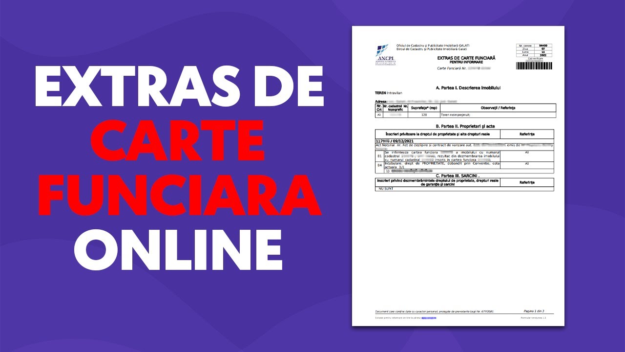 Modalitatea de a obține aceste documente este descrisă în platforma electronică gestionată de ANCPI, MyEterra, accesând myeterra.ancpi.ro, iar validarea solicitărilor durează maximum 72 de ore. Proprietarii pot folosi și contul lor de ROeID pentru a obține gratuit, online, aceste servicii.