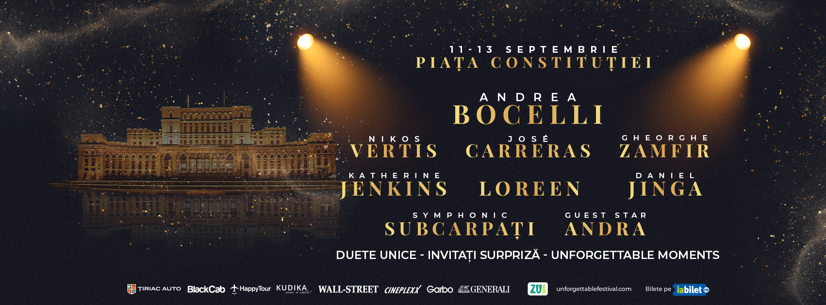 La Unforgettable Festival, tradiția muzicii clasice întâlnește energia genurilor moderne, creând o fuziune spectaculoasă. Pe scenă vor urca artiști precum Andrea Bocelli, Jose Carreras, Gheorghe Zamfir, Katherine Jenkins, Loreen, Nikos Vertis, Arash și Subcarpați Simfonic.