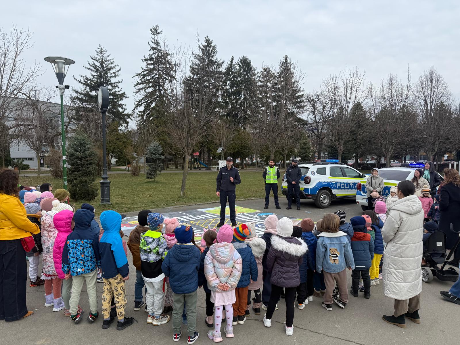 Pentru mai multă atractivitate, polițiștii structurilor implicate au utilizat covorașul de educație rutieră, încurajând învățarea prin joc.