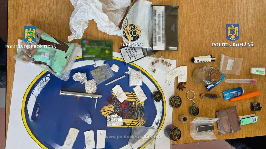 Substanțele interzise, constând în 7 comprimate ecstasy, 9 timbre LSD, diferite cantități de pulbere MDMA, cocaină, canabis , rezină de canabis și ketamină, grindere și mai multe obiecte purtând urme de substanță, au fost găsite în autoturismul cu care se deplasa inculpatul, ascunse într-o geantă.