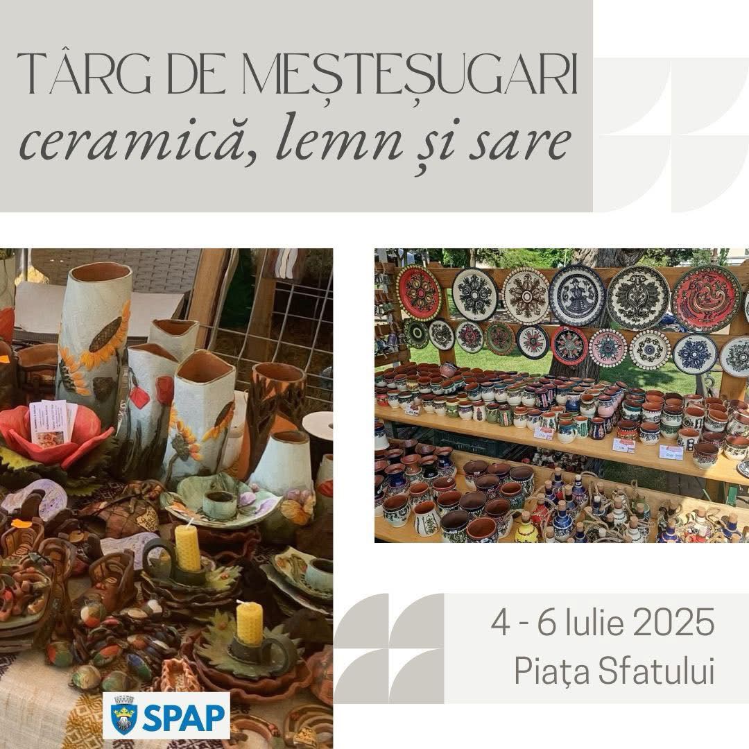Brașovul găzduiește, în perioada 4–6 iulie 2025, prima ediție a Târgului tematic de ceramică și meșteșuguri în lemn și sare, un eveniment dedicat artei tradiționale românești și meșteșugurilor autentice, transmise din generație în generație.