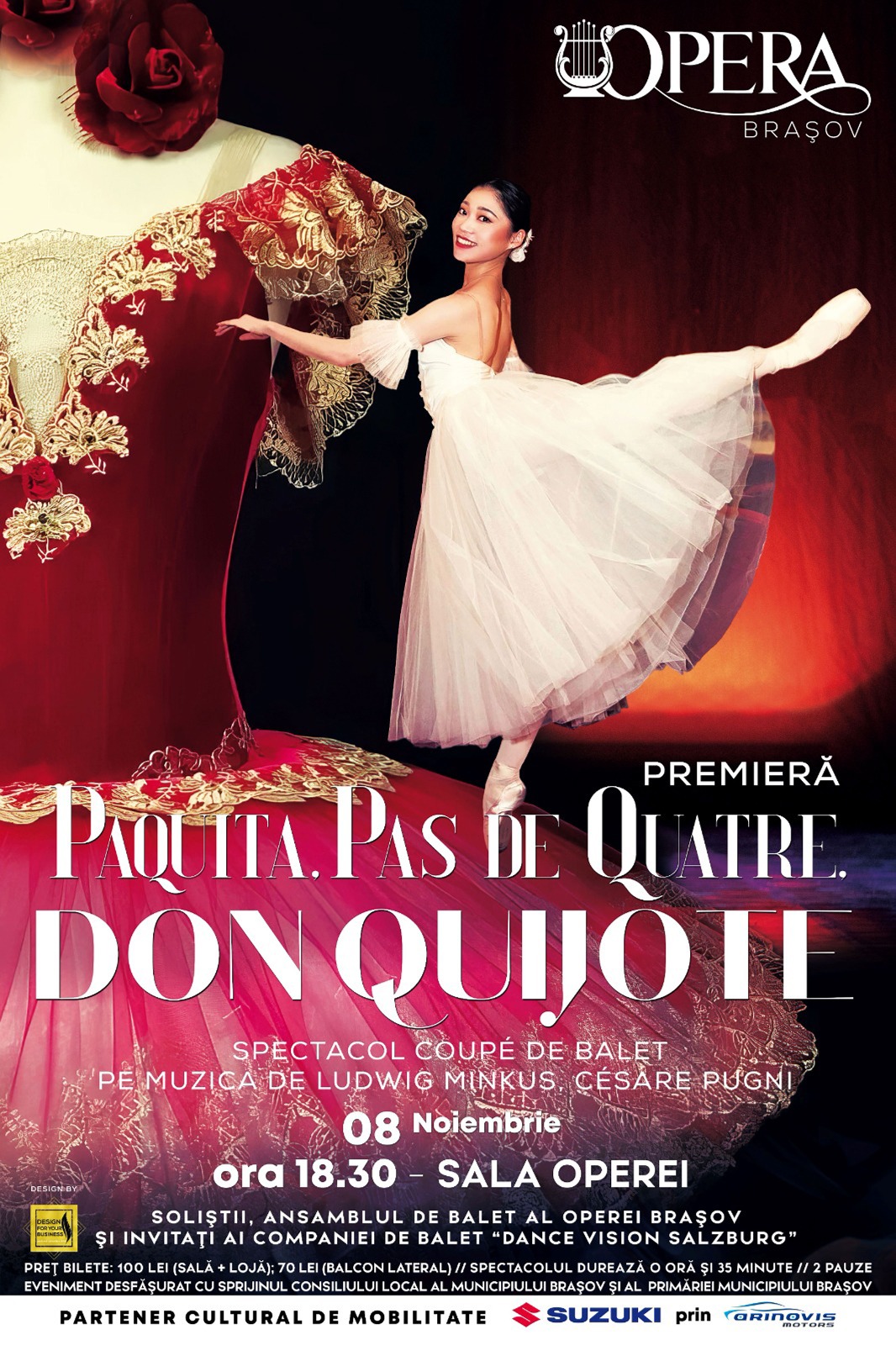 „Don Quijote” – balet bazat pe episoade preluate din celebrul roman „Don Quijote de La Mancha” al lui Miguel de Cervantes. În premiera de la Opera Brașov, vom prezenta un entre, nunta lui Kitri cu Basil, precum și seguidilla de final.