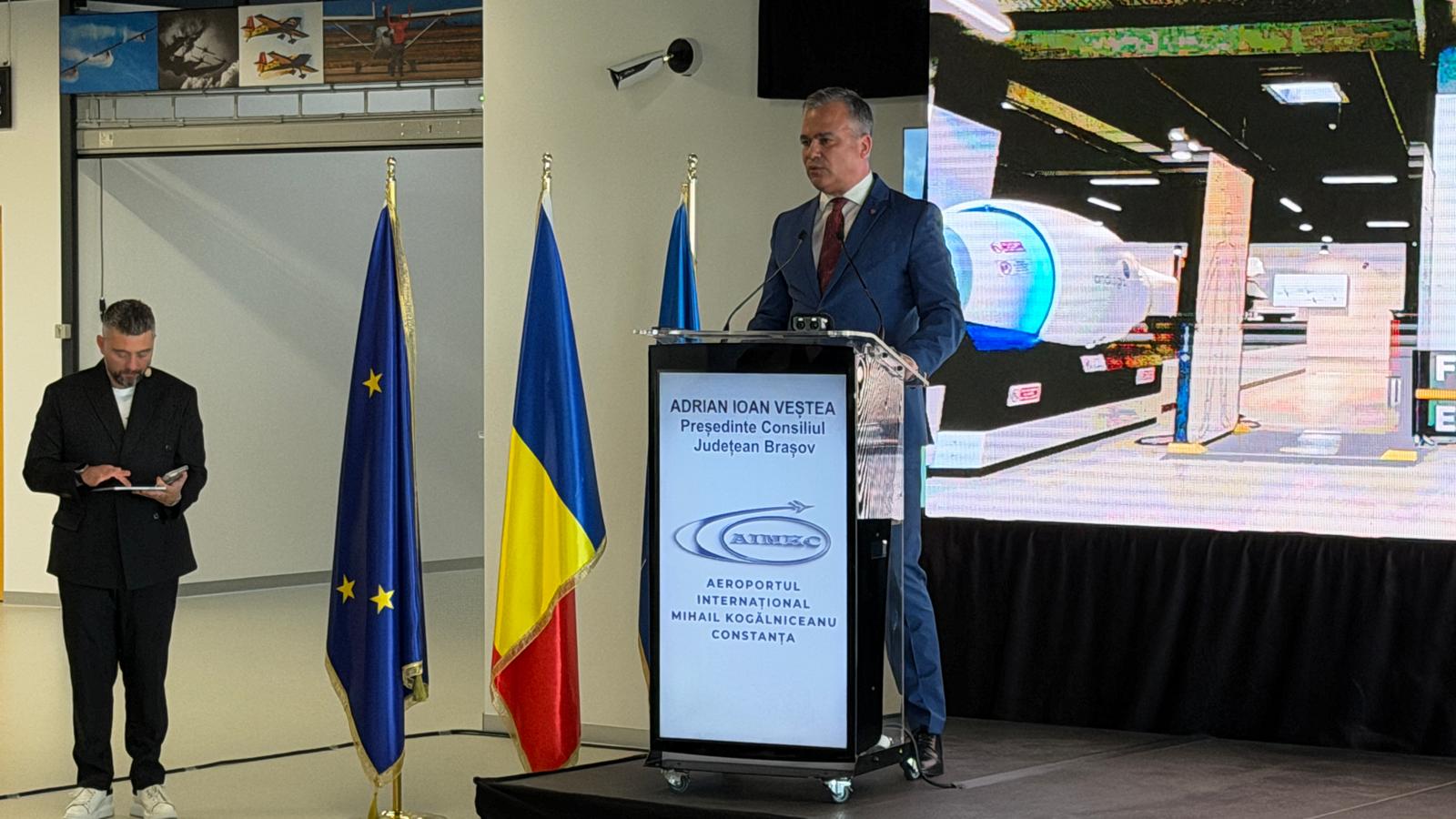 Președintele Consiliului Județean Brașov, Adrian-Ioan Veștea, a participat marți, 17 martie, la ceremonia de inaugurare a noului terminal de pasageri al Aeroportului Internațional Mihail Kogălniceanu Constanța. La eveniment a luat parte și directorul general al Aeroportului Internațional Brașov-Ghimbav, Daniel Micu.