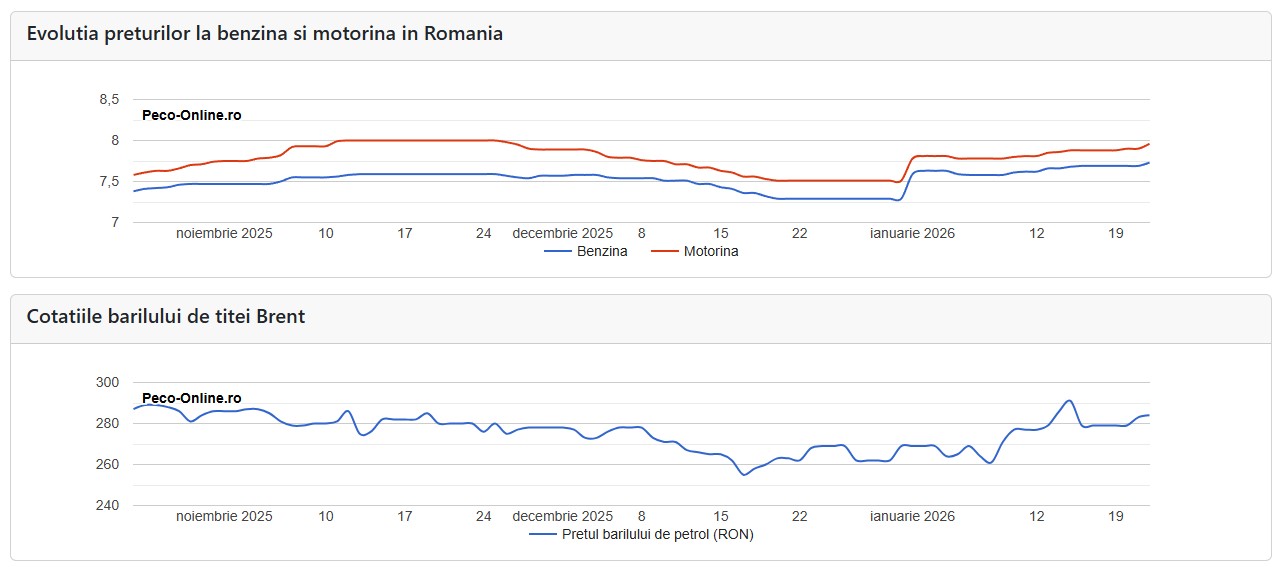 În ultimele 30 de zile, prețul mediu al unui litru de benzină s-a majorat cu 5,5%, în timp ce în cazul motorinei prețul mediu a crescut cu 5,2%.