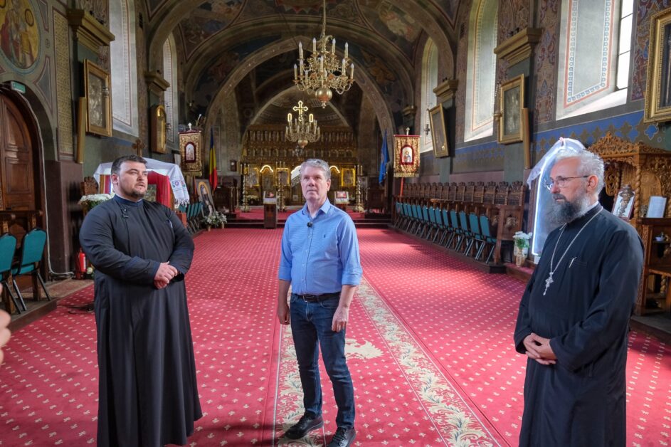,,Aici, în biserica mare, o să se intervină asupra picturii și o să se facă curățare, apoi integrare cromatică, pentru restaurare la tot ansamblul pictural. Totodată, o să avem și investiții legate de partea de instalații – instalațiile electrice, instalațiile termice și partea de securitate la incendiu, plus restaurarea iconostasului, cu toate icoanele altarului. Pe exterior o să facem partea de tencuială și punere în siguranță. În primă fază punem în siguranță picturile, o să ridicăm schelă, după care o să se refacă toată tencuiala exterioară și lacunele de pe acoperișul bisericii. În general, acoperișul este în regulă, avem mici probleme pe la partea de navă, unde o să se intervină local, după care, pe acoperișul de la paraclisul de nord, o să se intervină integral, vom schimba toată învelitoarea, partea de lemn, plus tabla de plumb care acoperă șarpanta. Investiția majoră va fi în aceste două paraclise. În ambele paraclise se va interveni asupra picturii și la partea de rezistență. Va trebui să intervenim asupra stratului pictural ca să îl consolidăm, după care se va face partea de restaurare, prin curățare și integrare cromatică”, a precizat preotul Valentin Moșoiu.