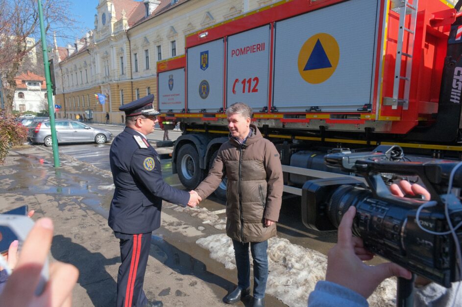 ,,Mulțumim Primăriei Municipiului Brașov și în special domnului primar. Într-adevăr, un echipament special, specializat pe un anumit tip de intervenții, în speță incendii de mari proporții. Acest echipament a veni cu o pulbere tip D care se folosește în majoritatea cazurilor unde avem metale piroforice care nu se sting, după cum știm, cu apă, inclusiv pentru mașini electrice, având în vedere că litiul este un metal piroforic, aflat în componența acumulatorilor acestor mașini și autobuze. După cum știm, Primăria Municipiului Brașov are parcul cel mai mare de autobuze electrice, cel puțin la nivel de județ, dacă nu cumva chiar și din țară. Și atunci, istoricul pe care l-am avut în ultimele intervenții de asemenea anvergură întâmplate în județul Brașov, ne-au condus să avem acest parteneriat. Nu este primul echipament pe care ni l-au furnizat și sperăm să nu fie ultimul. Dar, cu certitudine, de astăzi începând, mai avem un utilaj foarte important care o să ne sprijine în intervențiile noastre – noi sperăm să nu avem nevoie, dar dacă cumva o să avem, să avem un utilaj performant, care să ne ușureze munca. Are 4.000 de kilograme de praf și opt butelii cu azot care antrenează acel praf. Fiecare butelie are 50 de kilograme de azot. Putem să folosim și praful, antrenat de azot, dar și azotul singur, pentru stingerea anumitor tipuri de incendii”, a precizat inspectorul șef al Inspectoratului pentru Situații de Urgenta ,,Țara Bârsei” Brașov, general de brigadă Lucian Marciu.