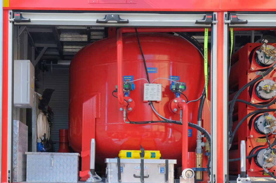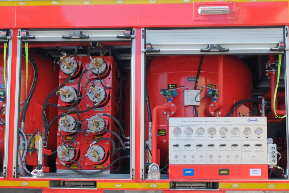 Instalația este formată din recipiente pentru praf, butelii cu azot, instalație de purjare (curățare), circuite pentru vehicularea azotului, unitate de control și instalație de refulare. Utilajul are două buncăre a câte 2.000 de kilograme fiecare, cu o pulbere specială tip D. Mașina este potrivită pentru stingerea incendiilor de metale, aluminiu și magneziu fiind echipată cu un panou de comandă împărțit în două zone de lucru denumite buncărul 1 și buncărul 2. Butelia de comandă asigură presiunea funcționării tuturor sistemelor electro pneumatice. Principiul de acționare este simplu și printr-o simplă apăsare a unui buton, valvele electro-pneumatice se deschid automat. Are loc presurizarea rezervorului moment în care se poate utiliza în intervenție. Timpul de presurizare este undeva la sub 1 minut. Sistemul poate opera la temperaturi cuprinse între -20˚C și +50˚C.