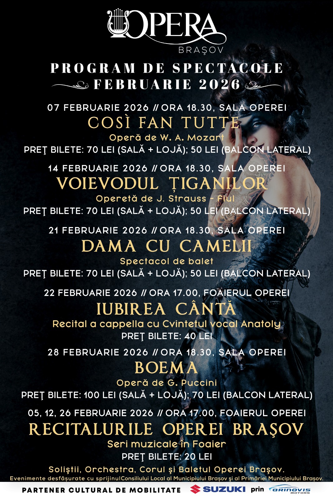 PROGRAM de SPECTACOLE – FEBRUARIE 2026 (Opera Brașov)