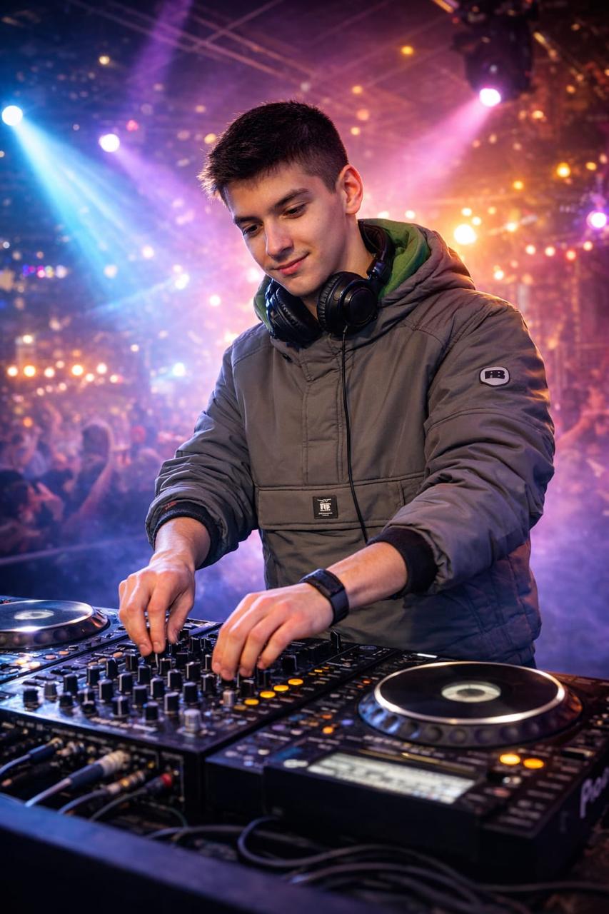 Așadar, petrecerea începe de la ora 19.30 cu brașoveanul Claudiu Albu, un DJ din tânăra generație, în vârstă de 16 ani. Este talentat, pune muzica de câțiva ani si promite sa fie un viitor star.